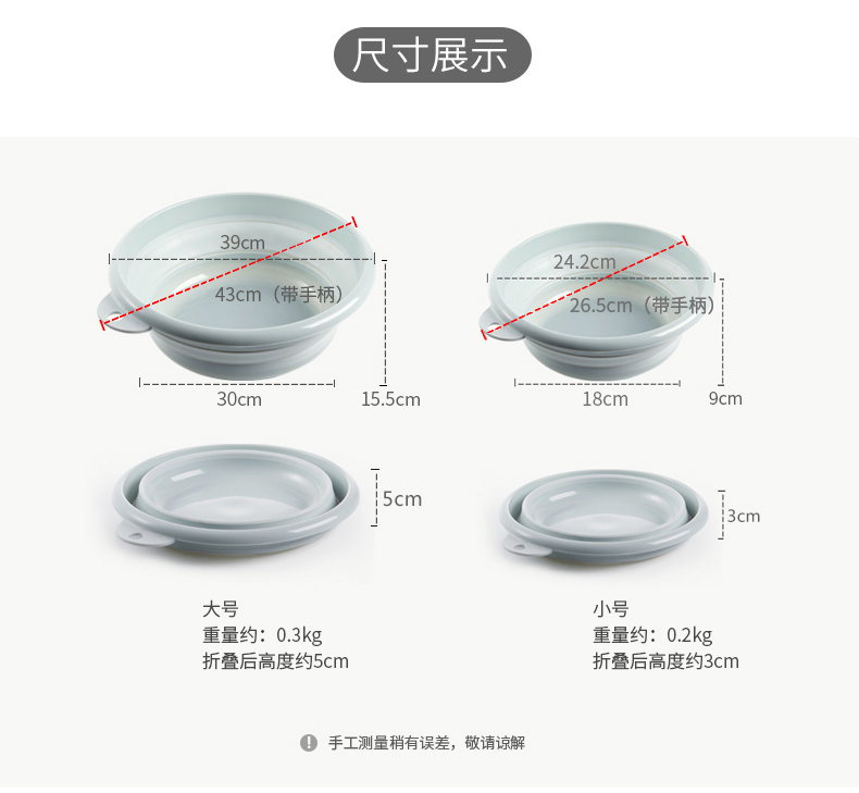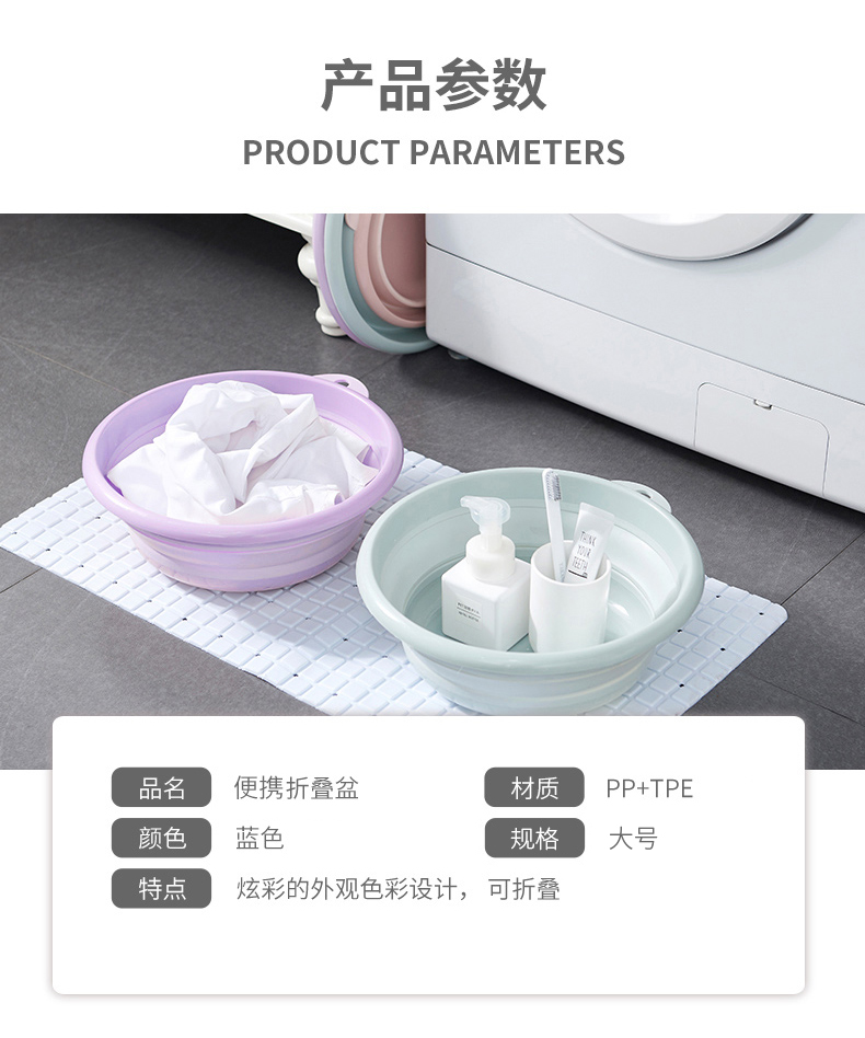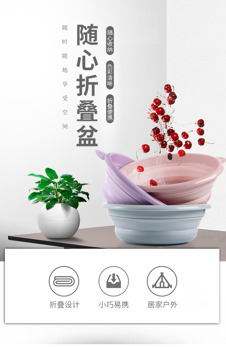 商品名称:京惠思创 【便携不占地】可折叠洗脸盆 家用大号洗衣盆39cm 学生宿舍用压缩旅游洗菜洗脚盆 JH7095