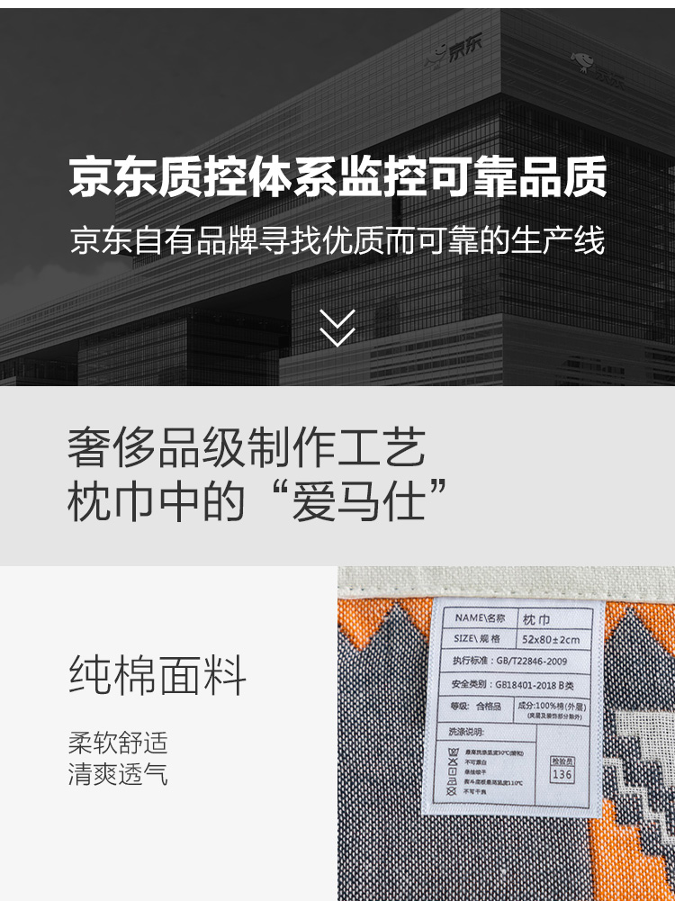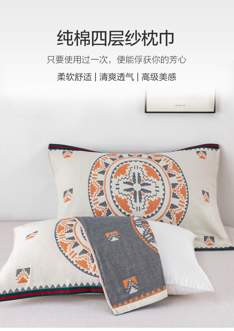 - 商品名称:佳佰 枕巾 纯棉四层纱枕套全棉加大枕头巾 太阳花 52*80cm(一对装)