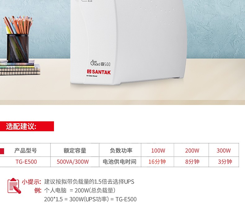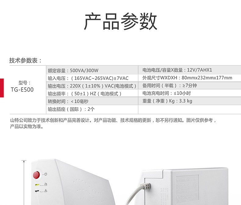 - 商品名称:山特(SANTAK)TG-E500 后备式ups不间断电源电脑收银机路由器备用 500VA/300W
