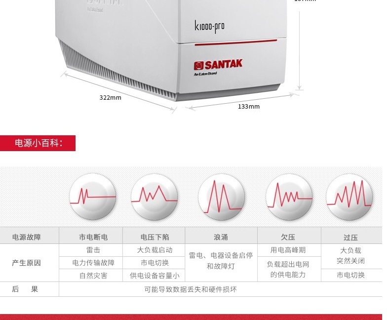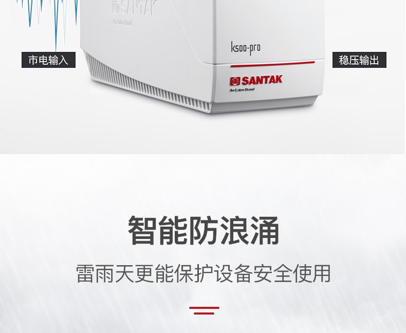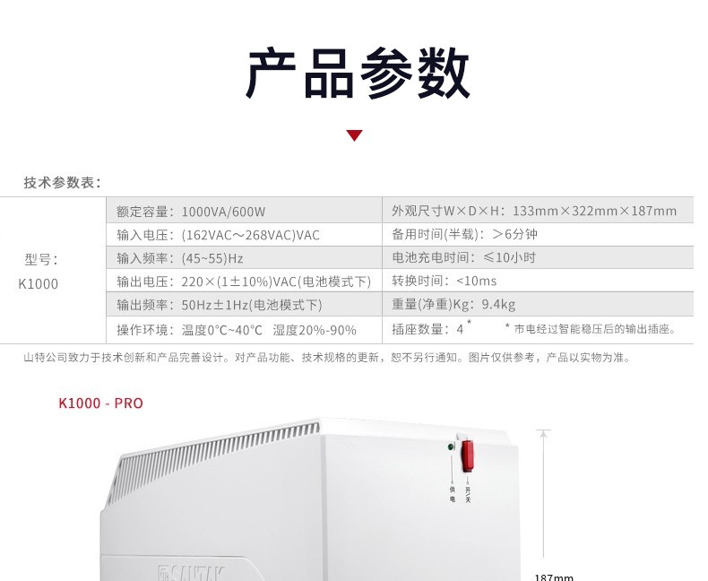 - 商品名称:山特(SANTAK)K1000-Pro 后备式UPS不间断电源带稳压功能电脑监控收银机备用 1000VA/600W