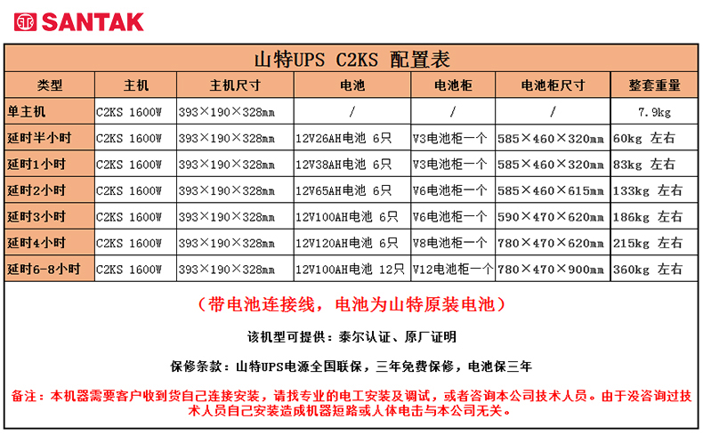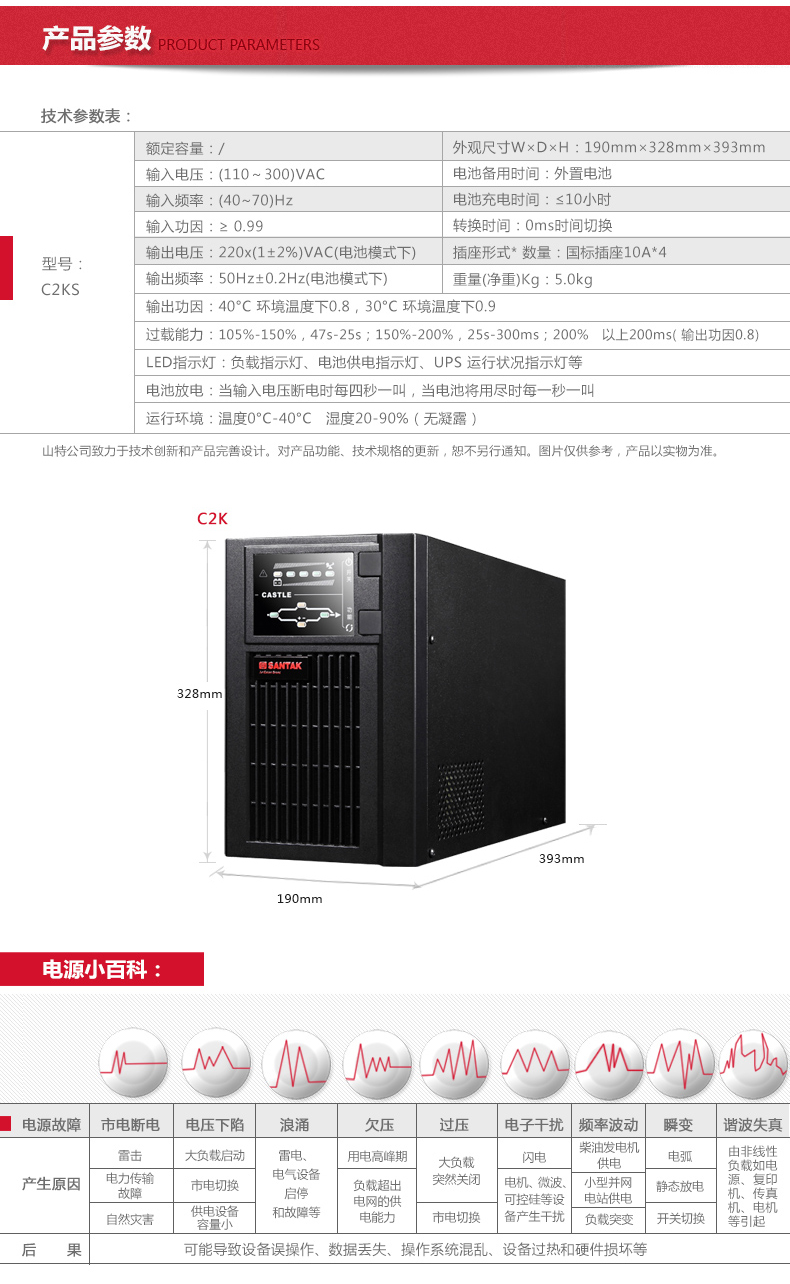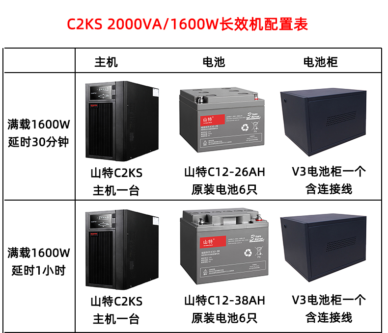 商品名称:山特(SANTAK)C2KS 2000VA/1600W在线式UPS不间断电源外接电池长效机 满载1600W供电2小时