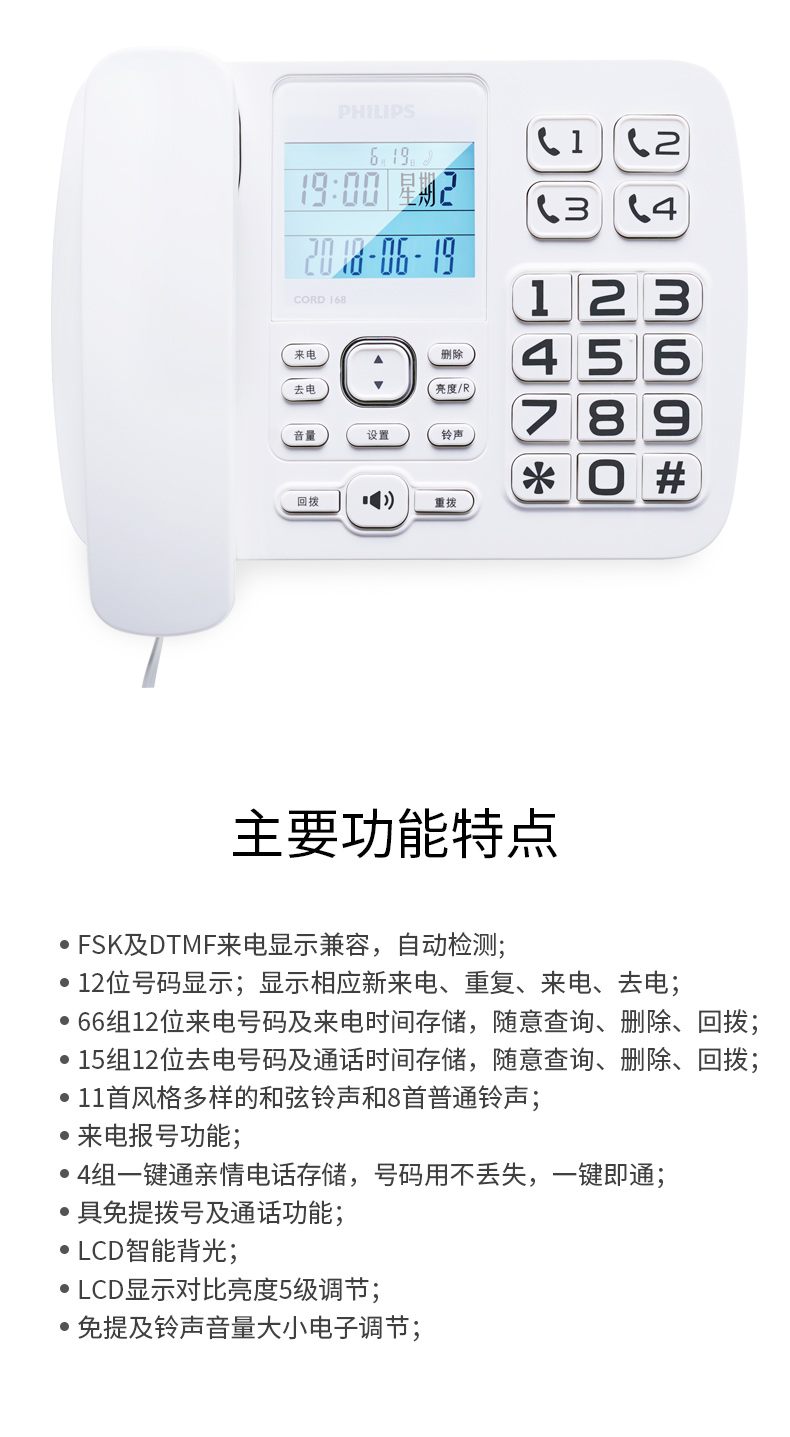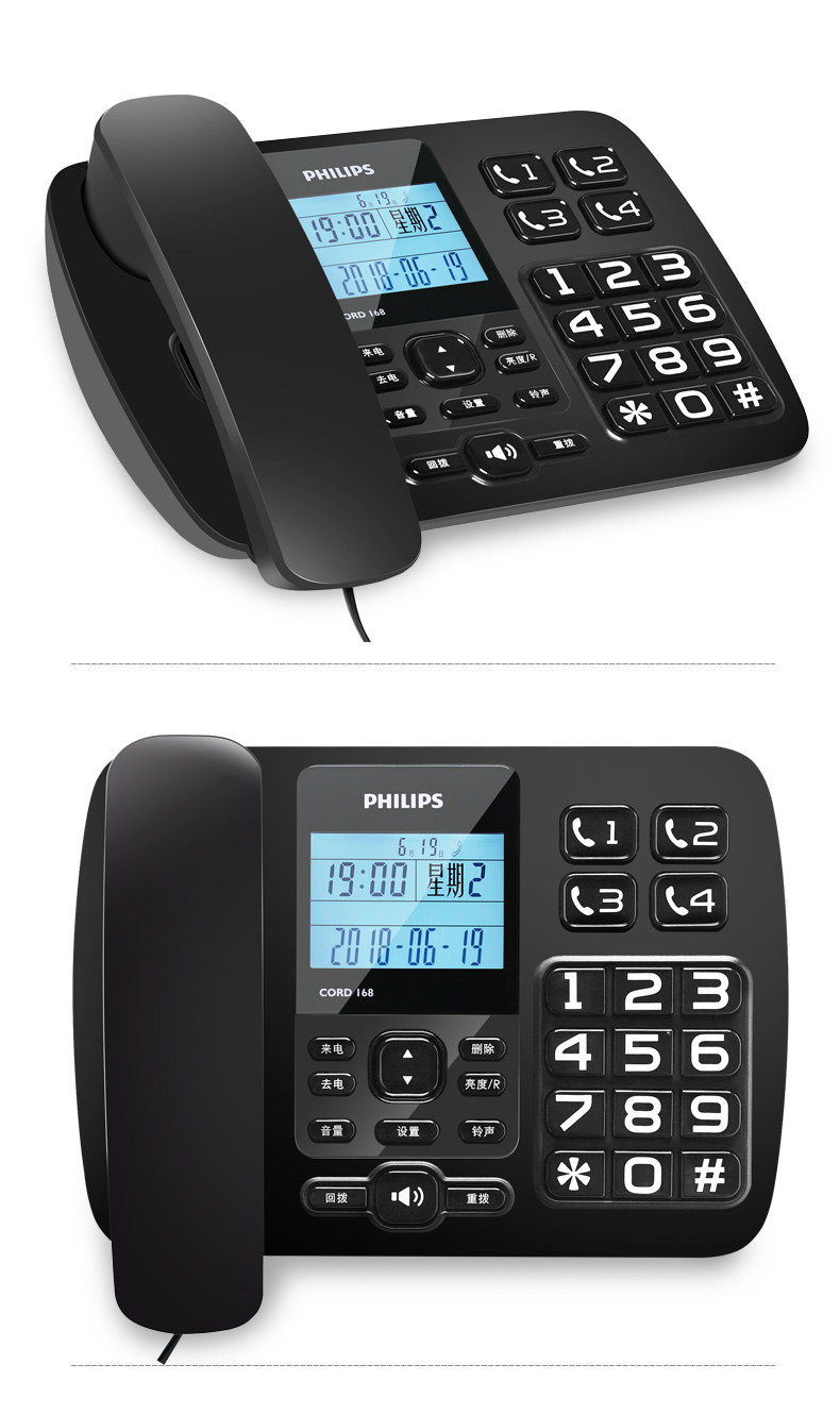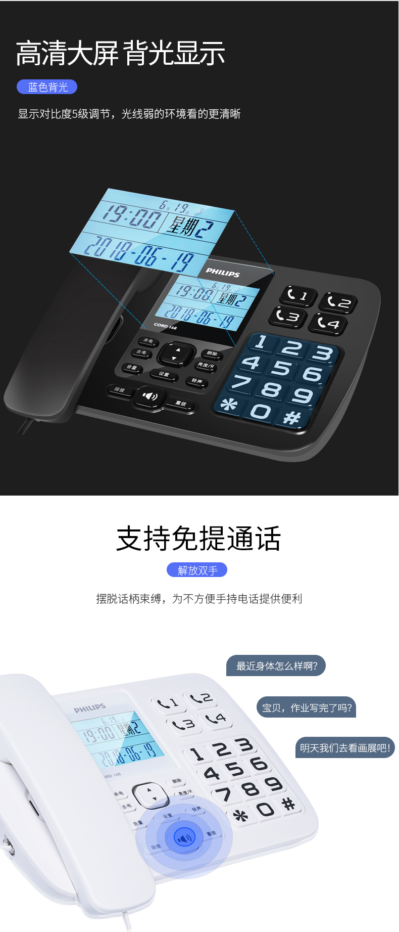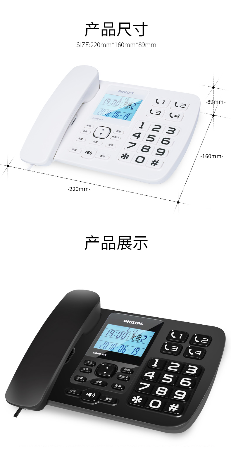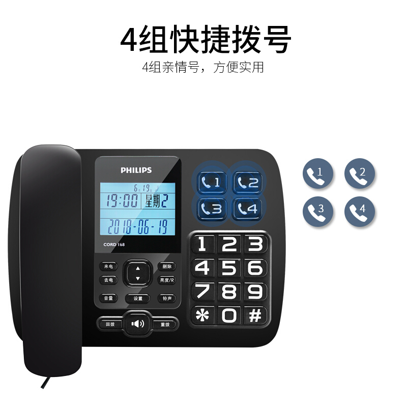 - 商品名称:飞利浦(PHILIPS)电话机座机 固定电话 办公家用 来电报号 大屏大按键 老人机 CORD168黑色