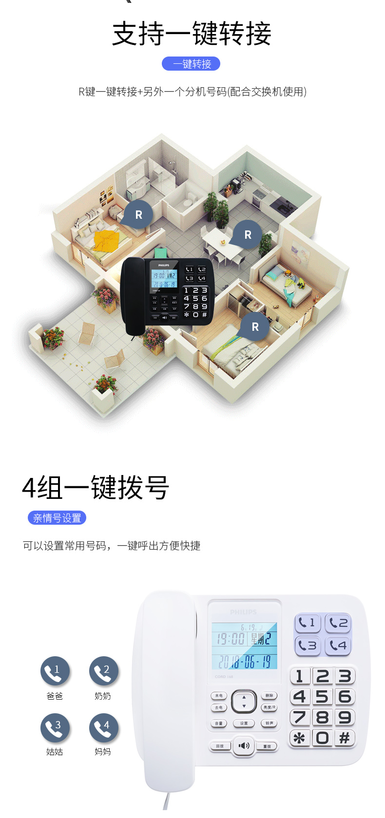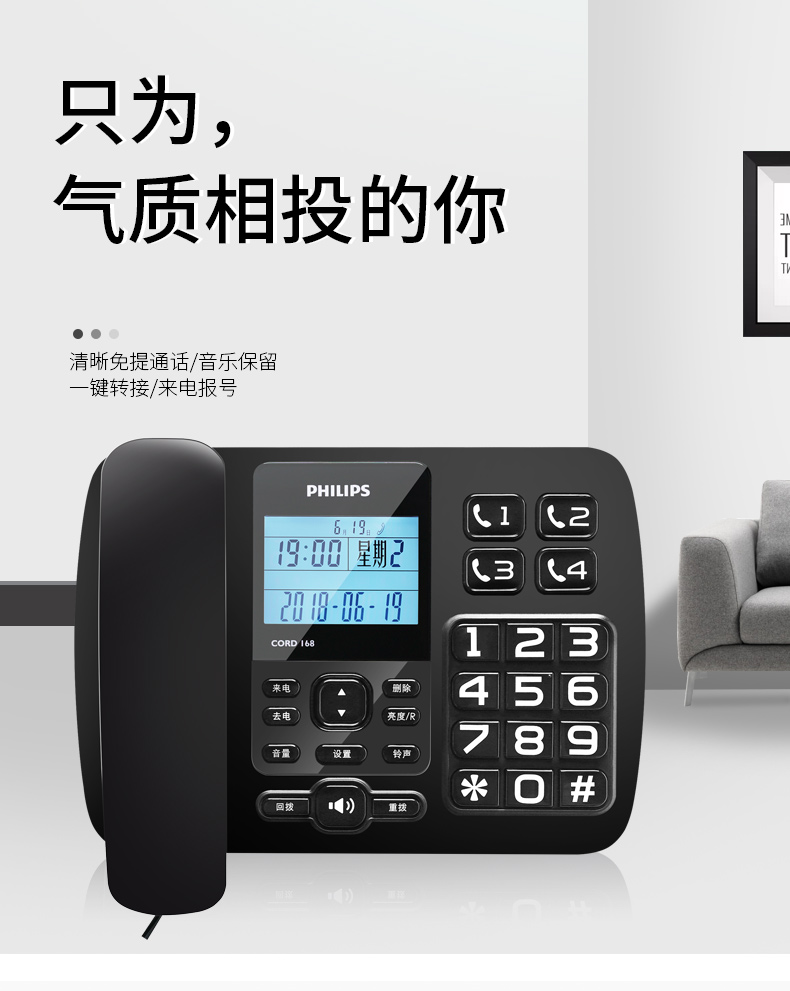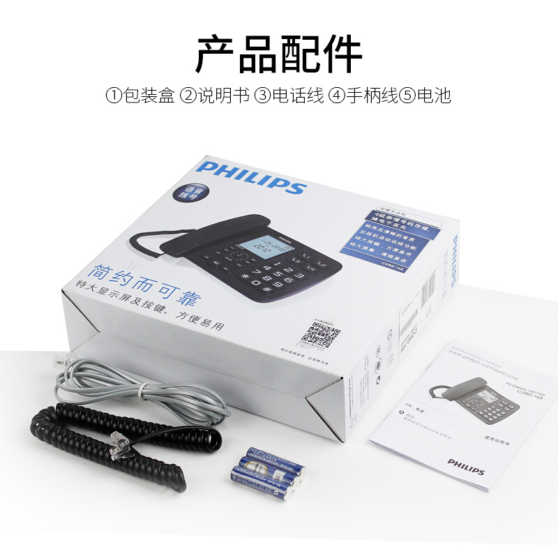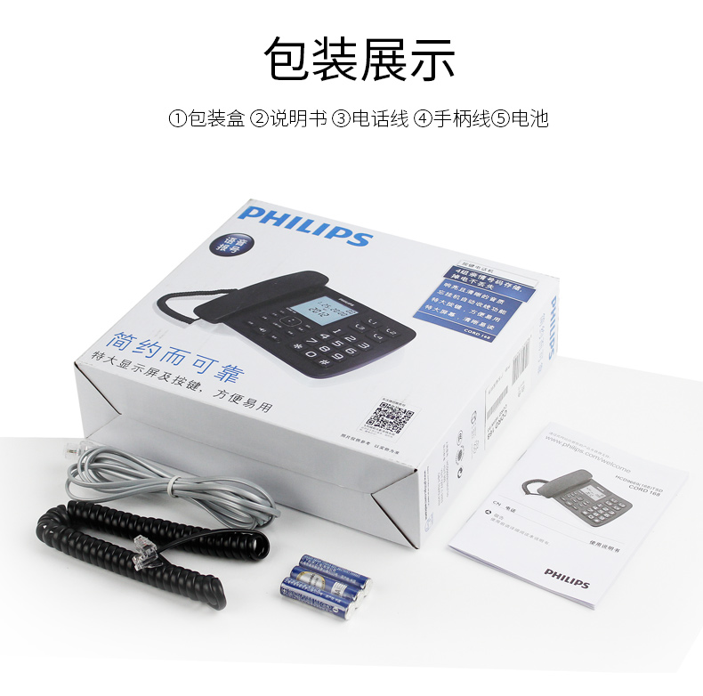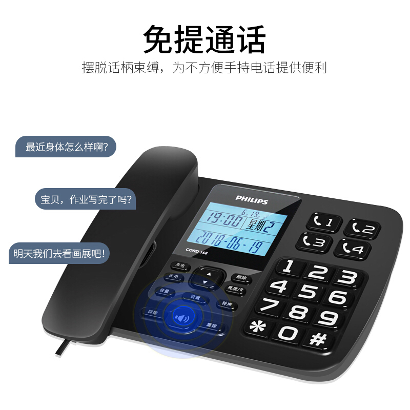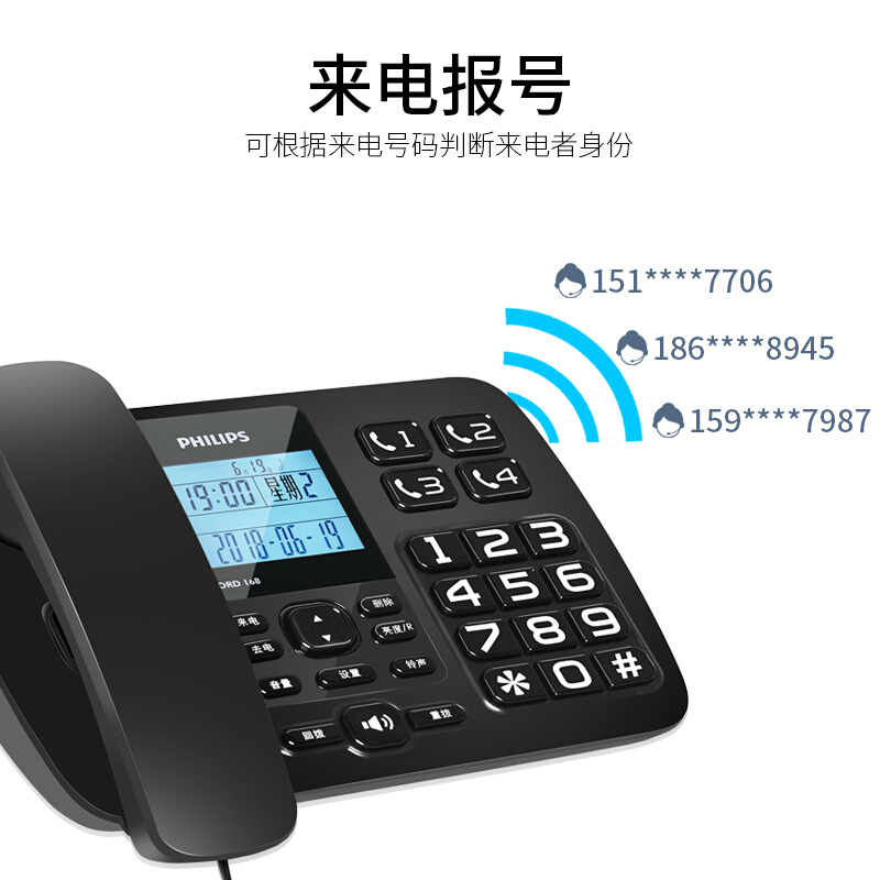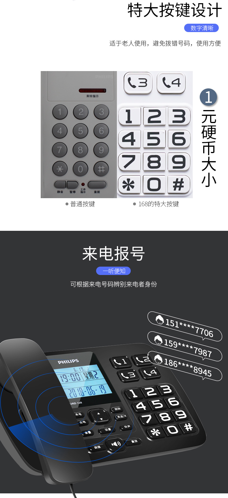 - 商品名称:飞利浦(PHILIPS)电话机座机 固定电话 办公家用 来电报号 大屏大按键 老人机 CORD168黑色
