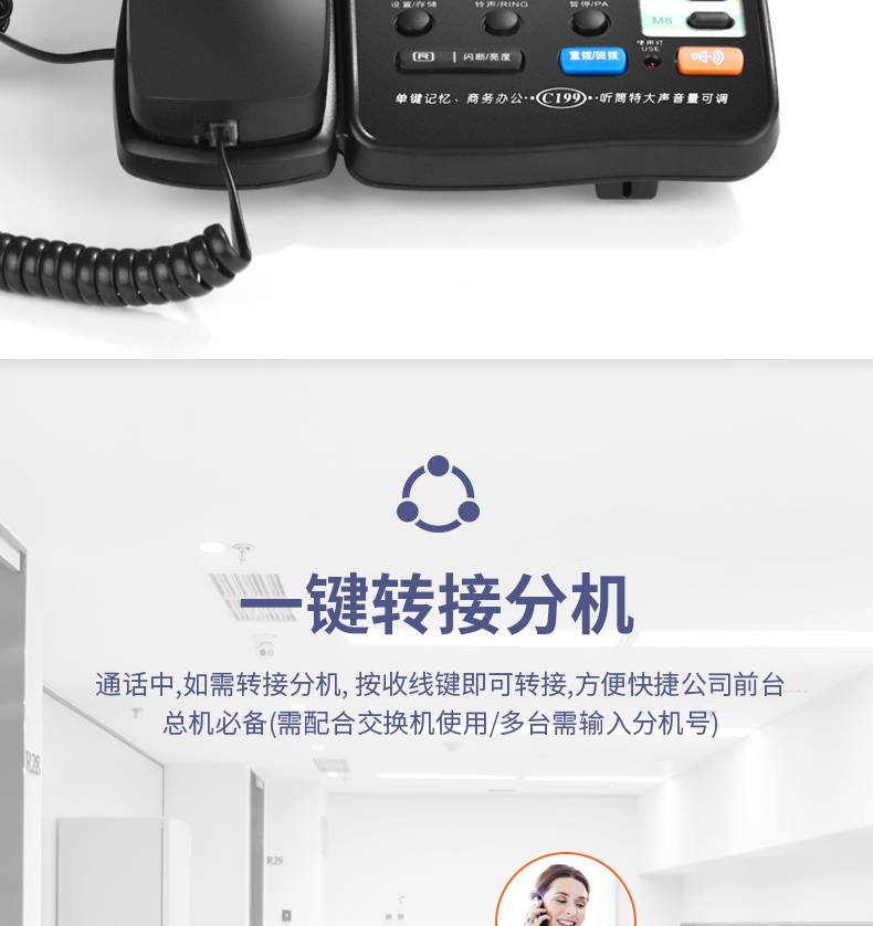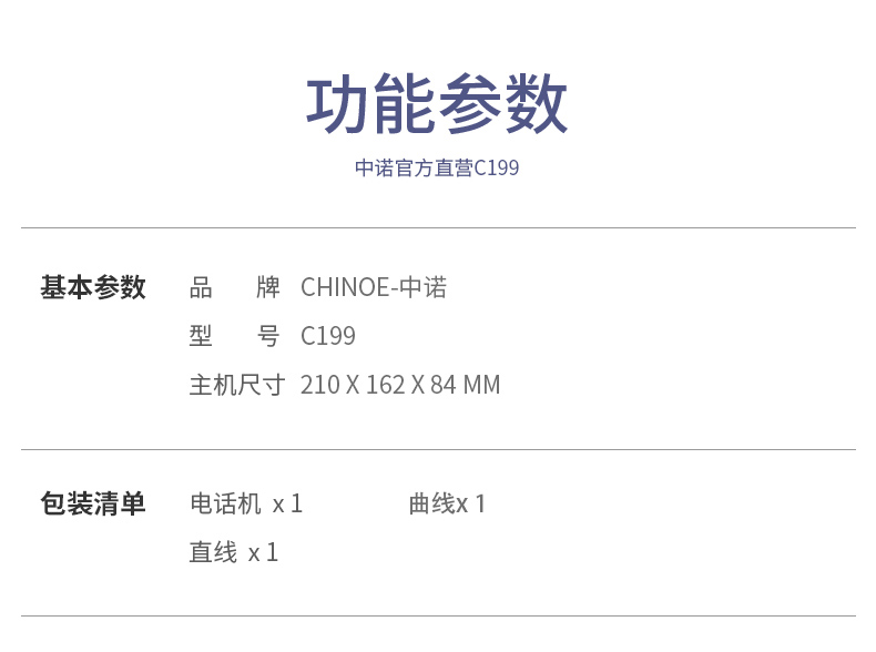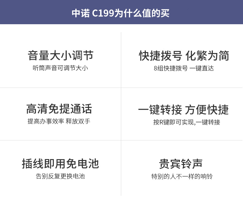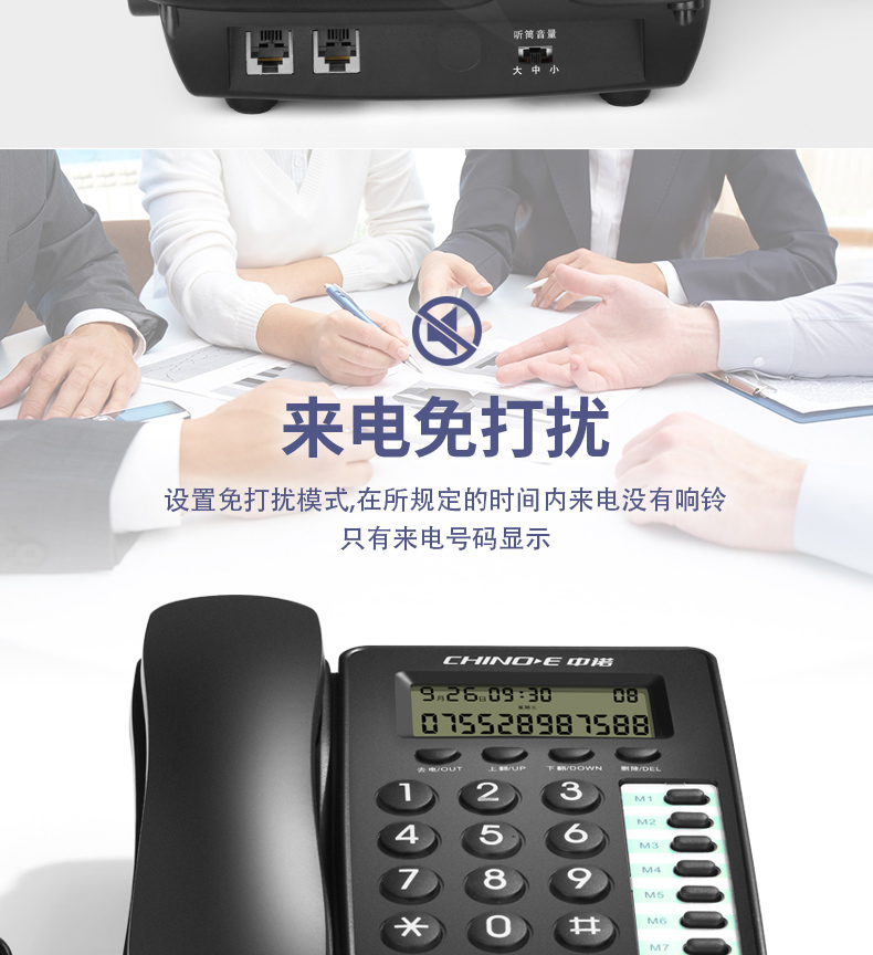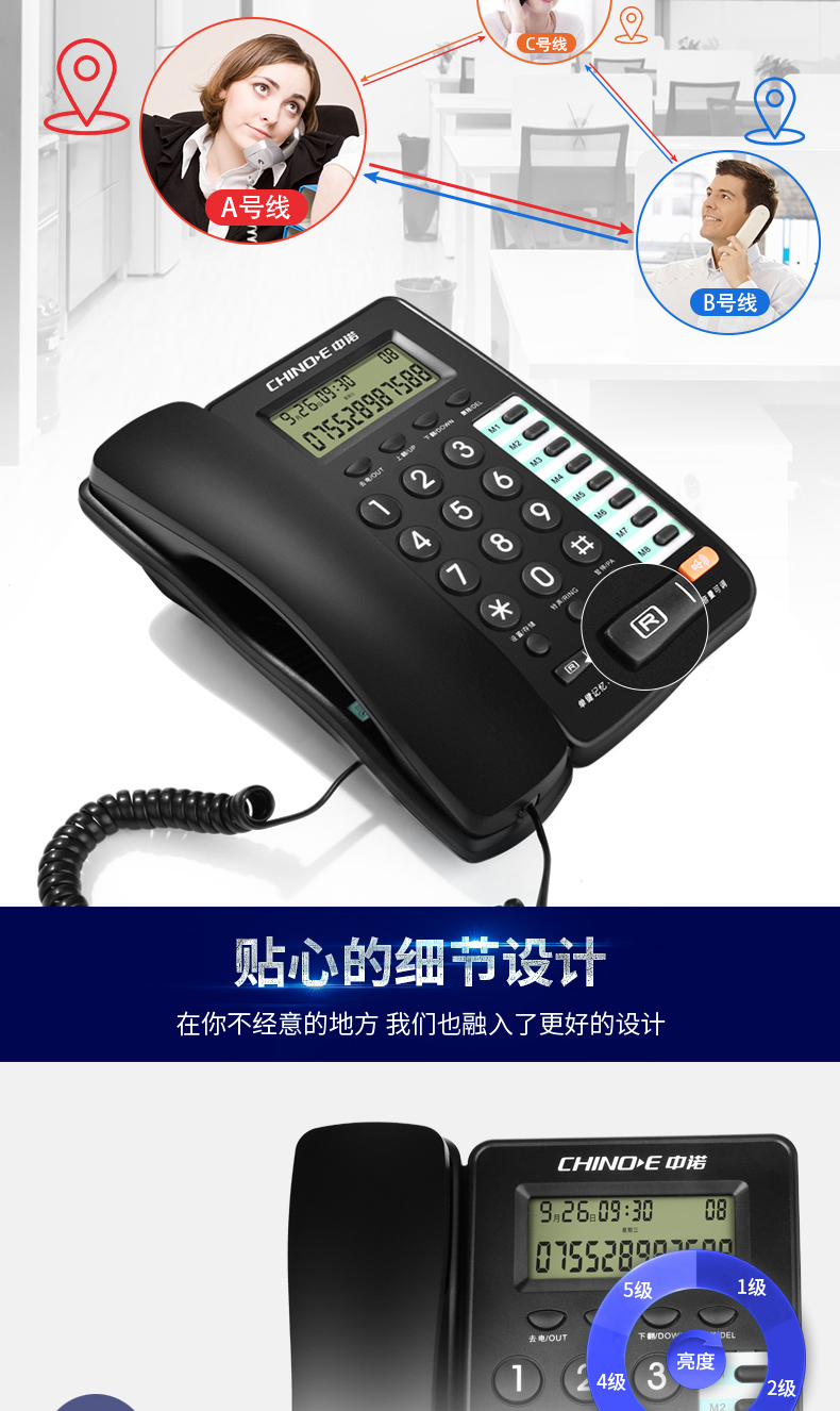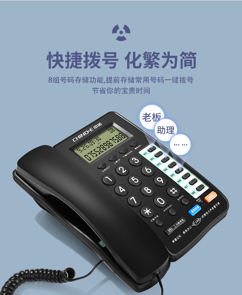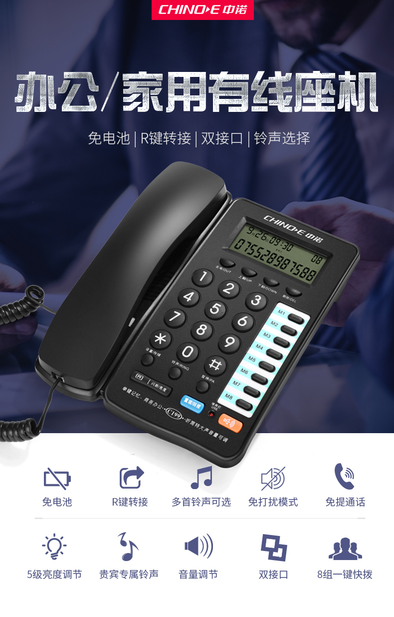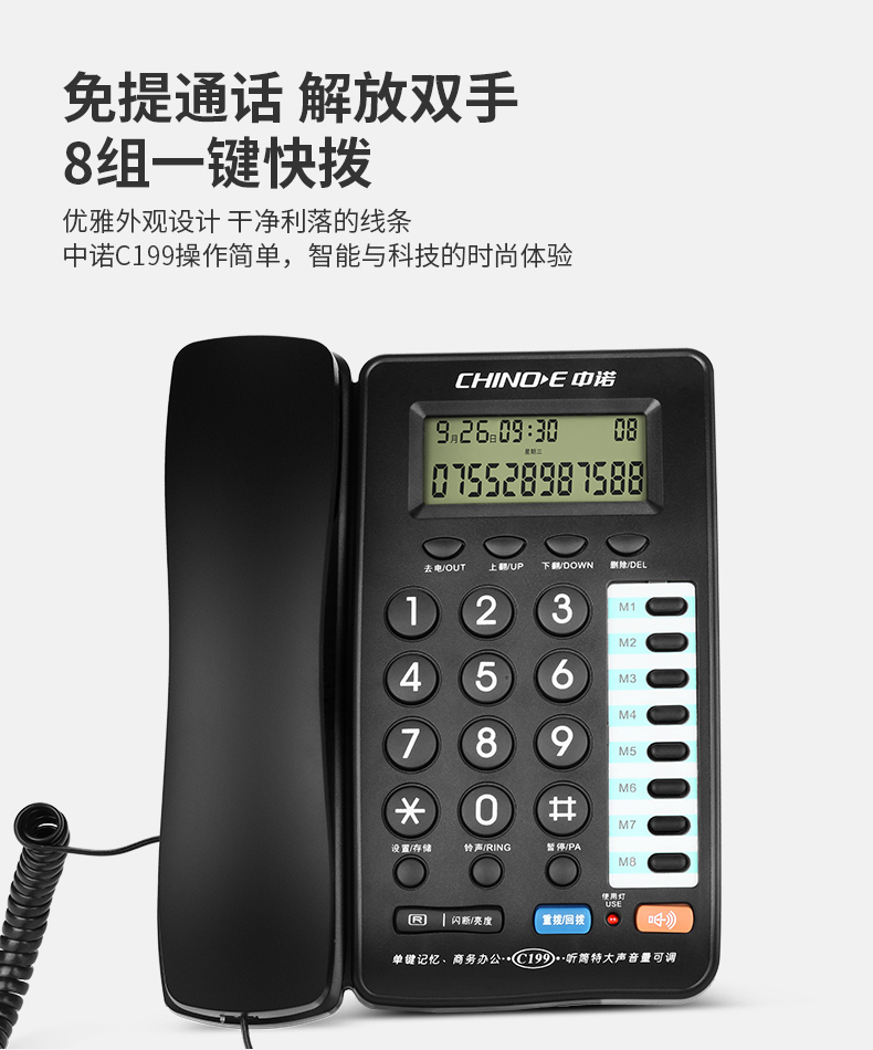 商品名称:中诺(CHINO-E)电话机座机 固定电话 办公家用 8组一键拨号 贵宾专属铃声 通话音量可调 C199黑色