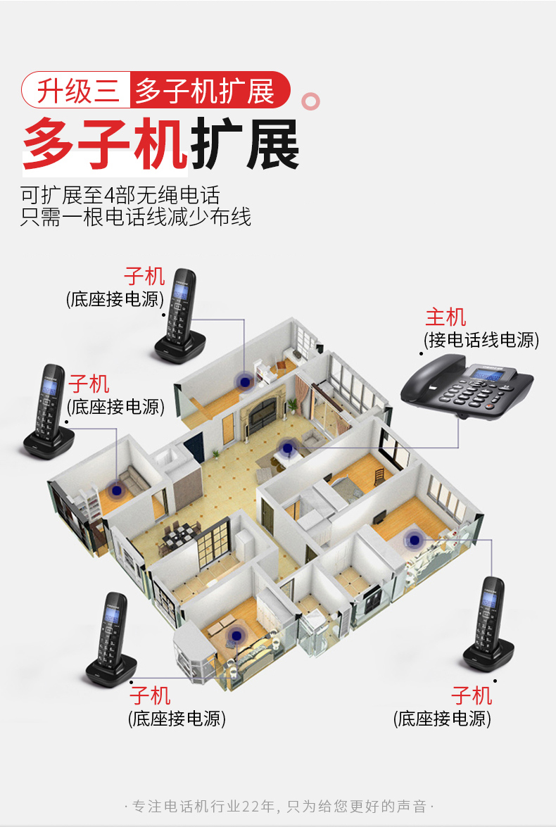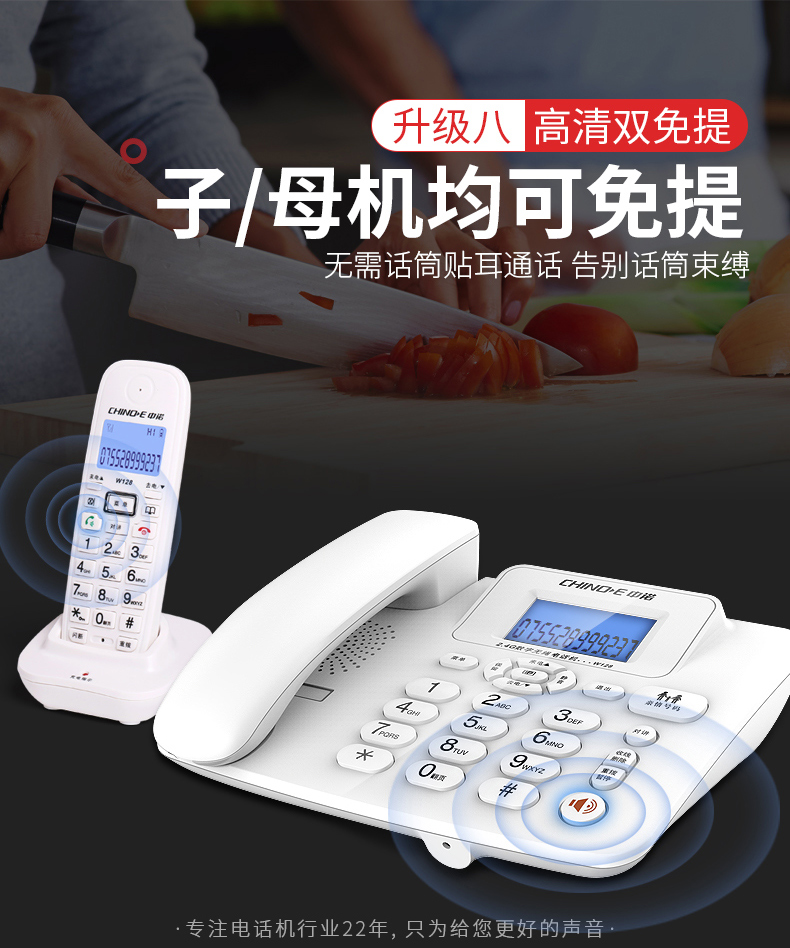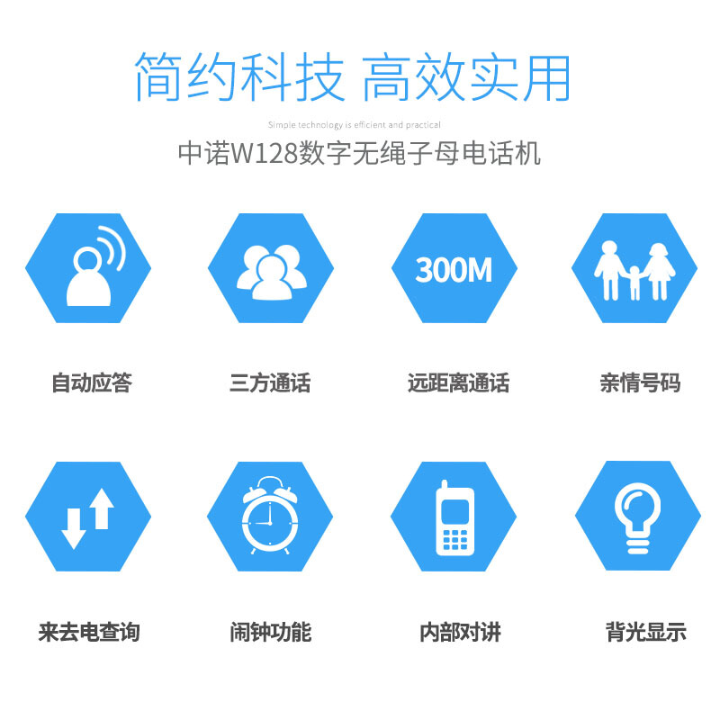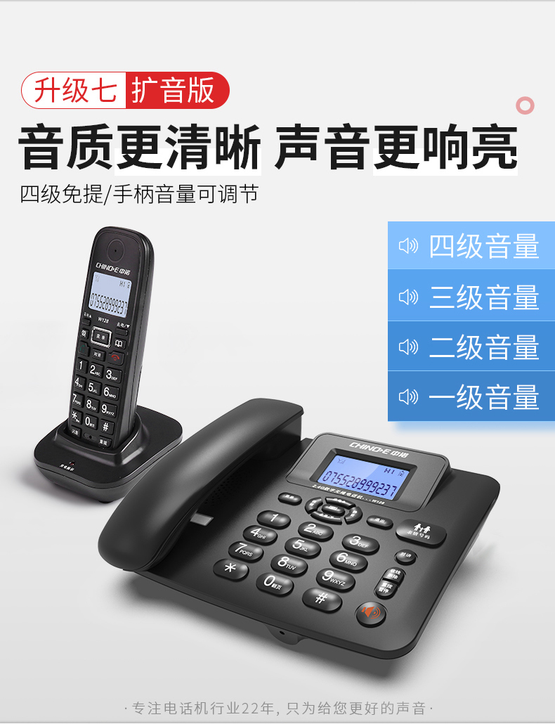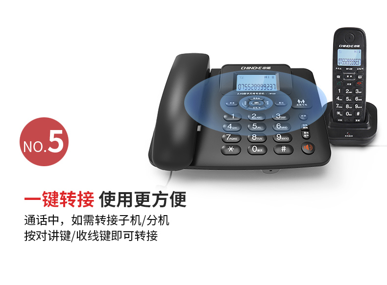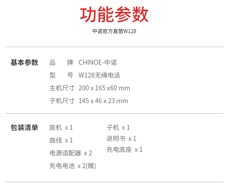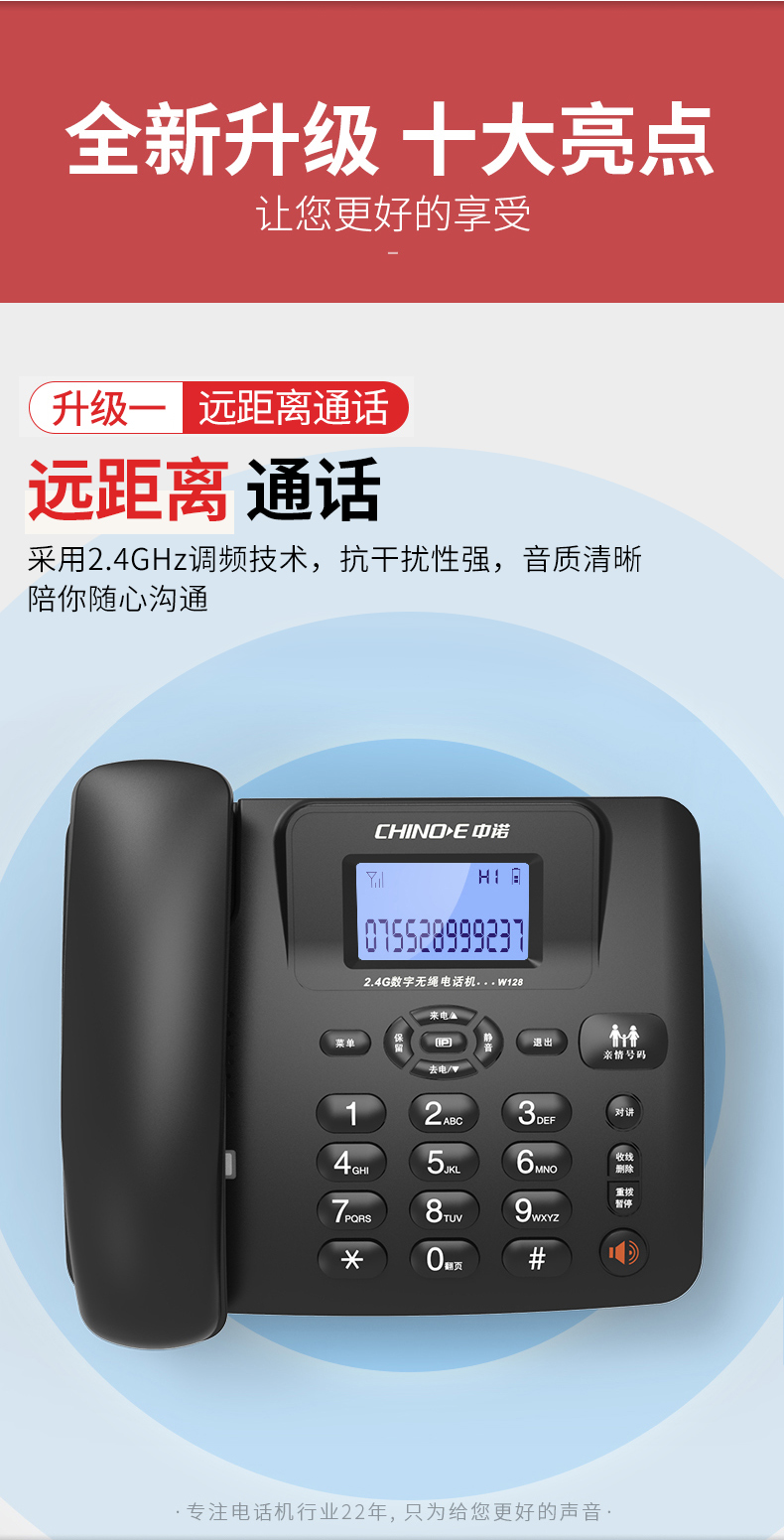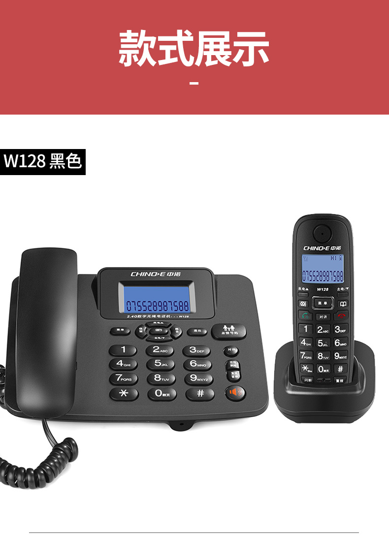 商品名称:中诺 数字 无绳 电话机 无线 座机 子母机 一拖一 套装 内线通话 一键拨号 固定 电话 W128黑色