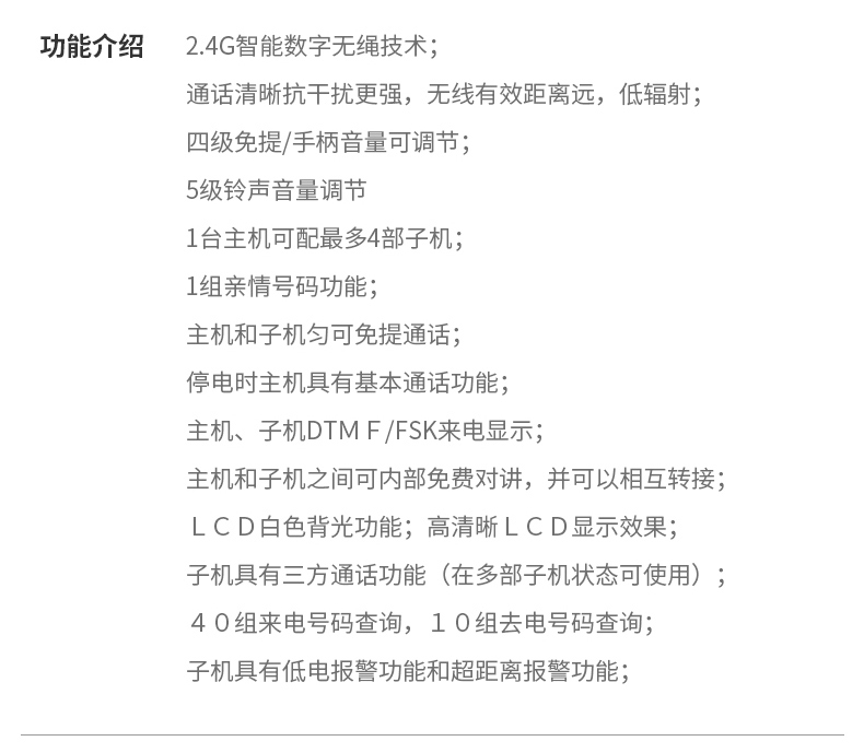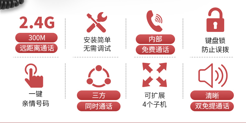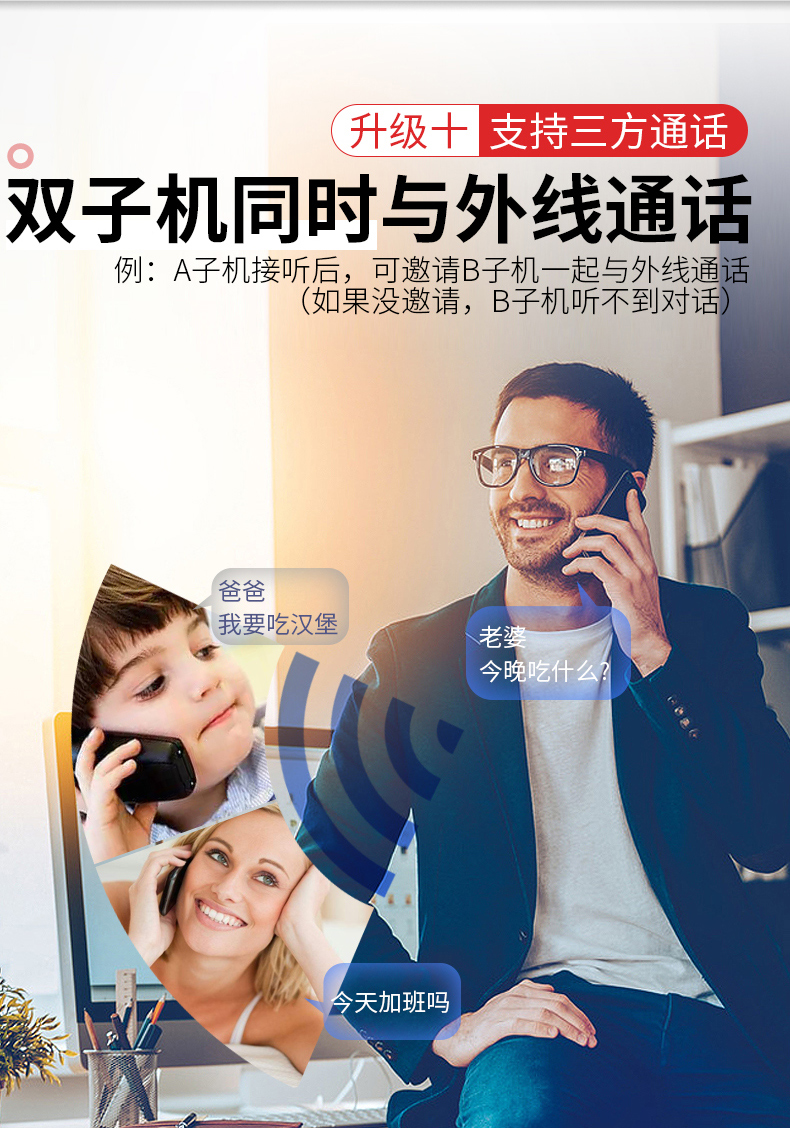 特色功能:一键拨号;铃声选择;三方通话;来电静音