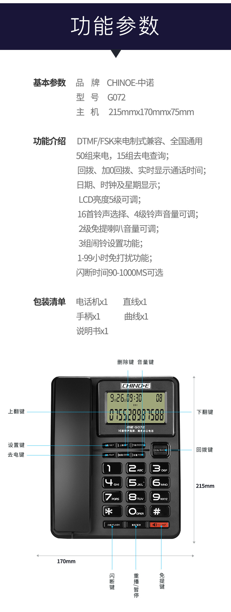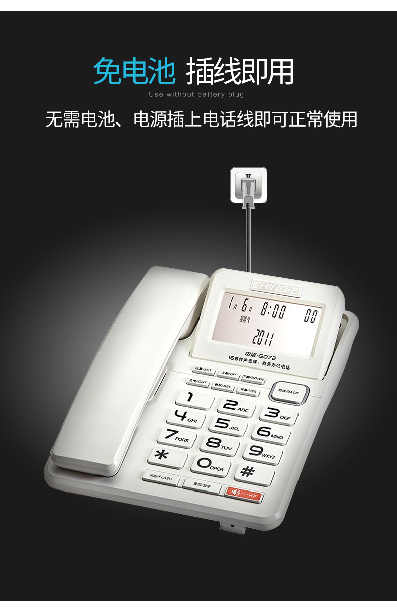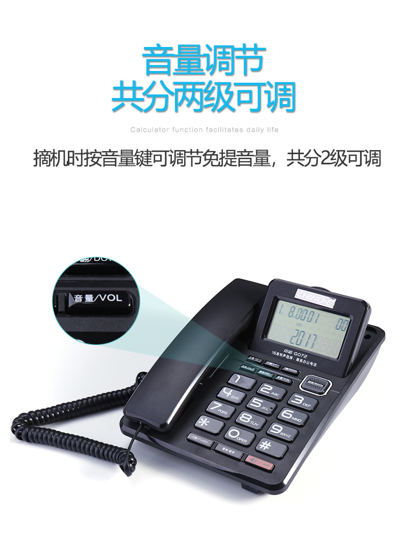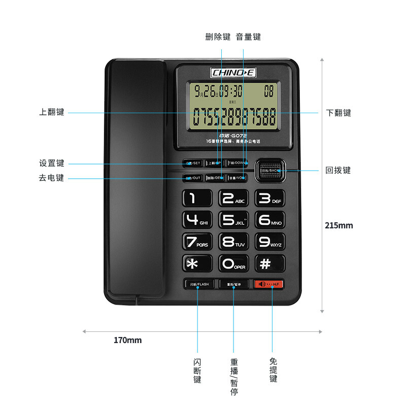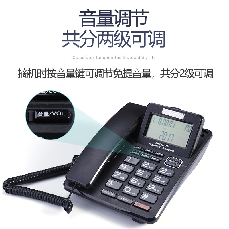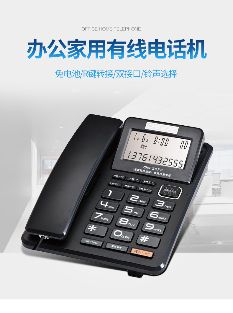 - 商品名称:中诺 电话机 座机 固定 电话 来电显示 屏幕角度可调 独立音量 免打扰 有绳板机 G072黑色