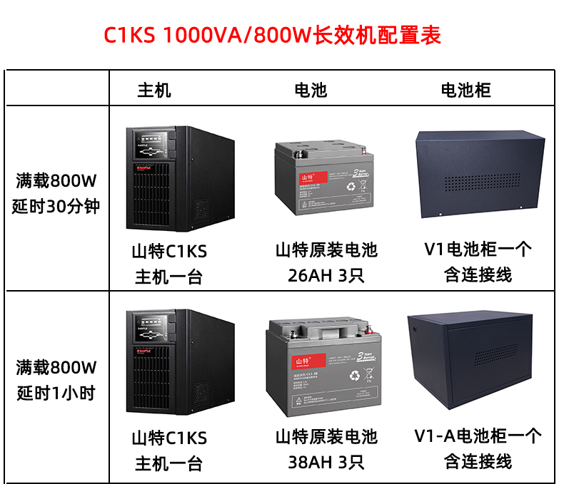 - 商品名称:山特(SANTAK)C1KS 1000VA/800W在线式UPS不间断电源外接电池长效机 满载800W供电30分钟