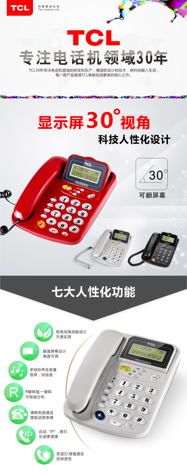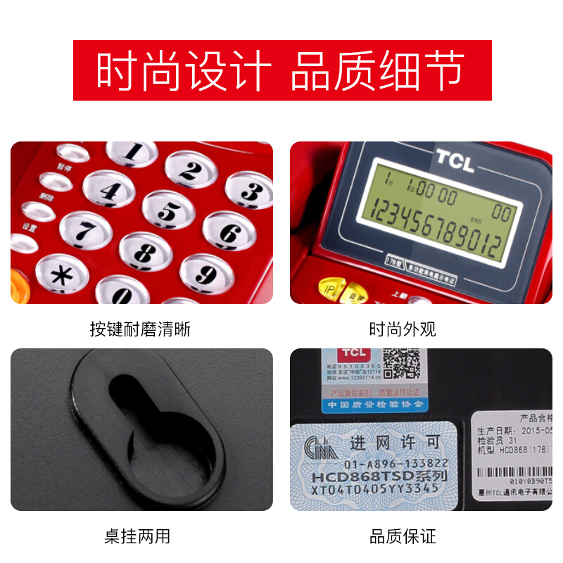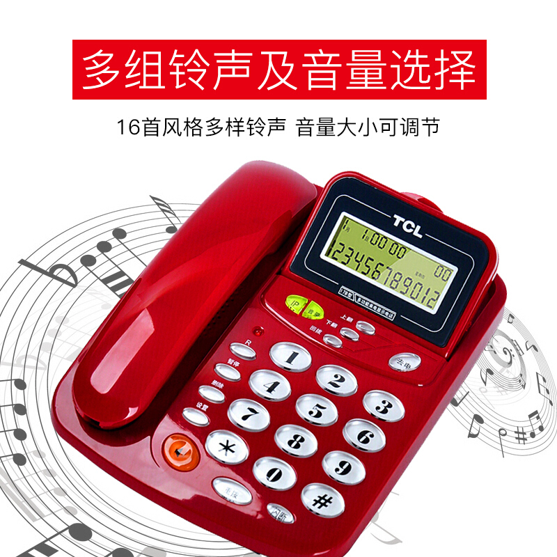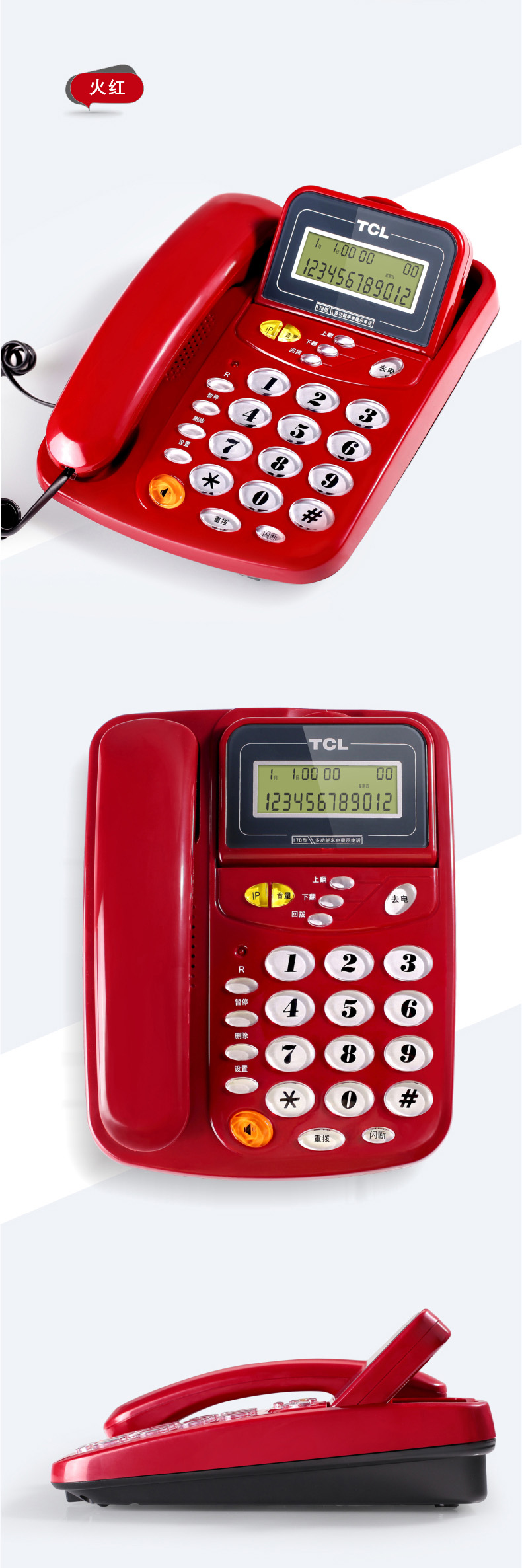 - 商品名称:TCL 电话机座机 固定电话 办公家用 来电显示 免电池 座式壁挂 HCD868(17B)TSD (火红色)