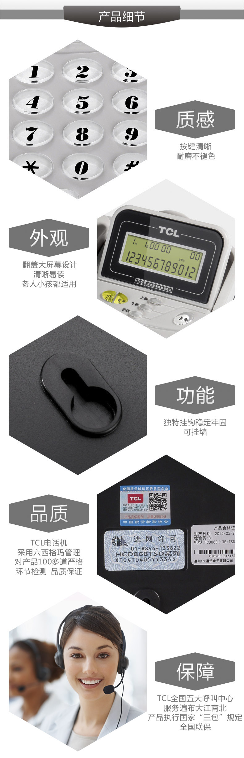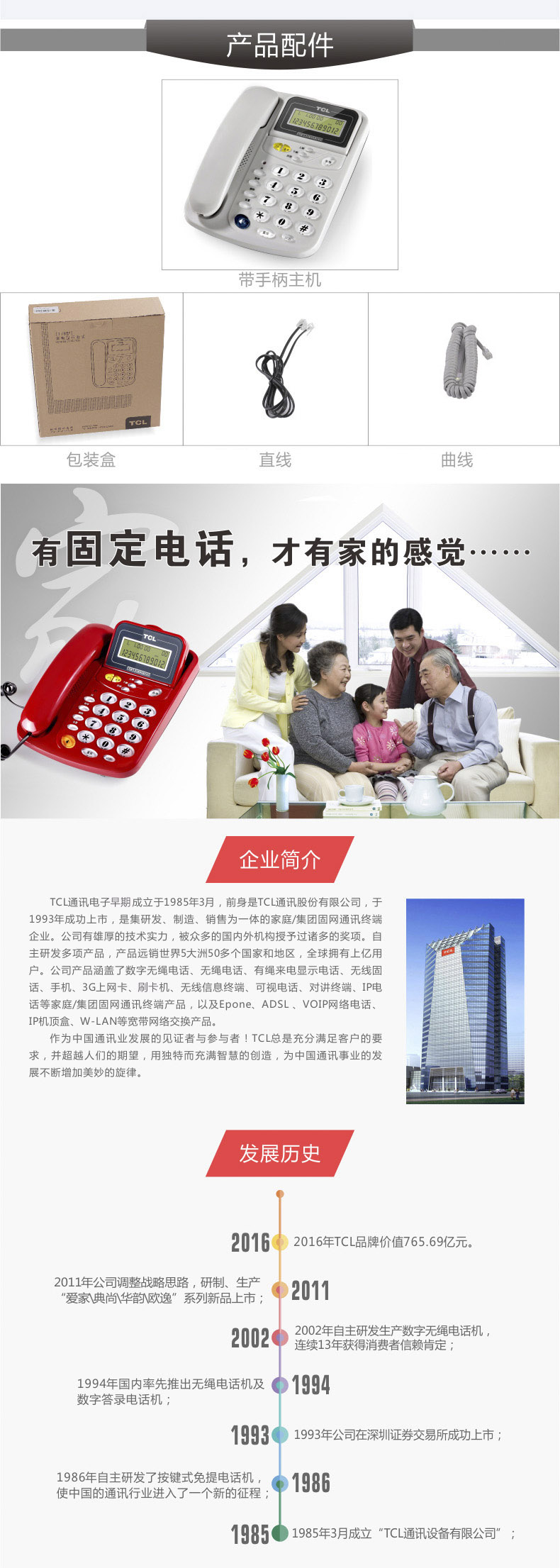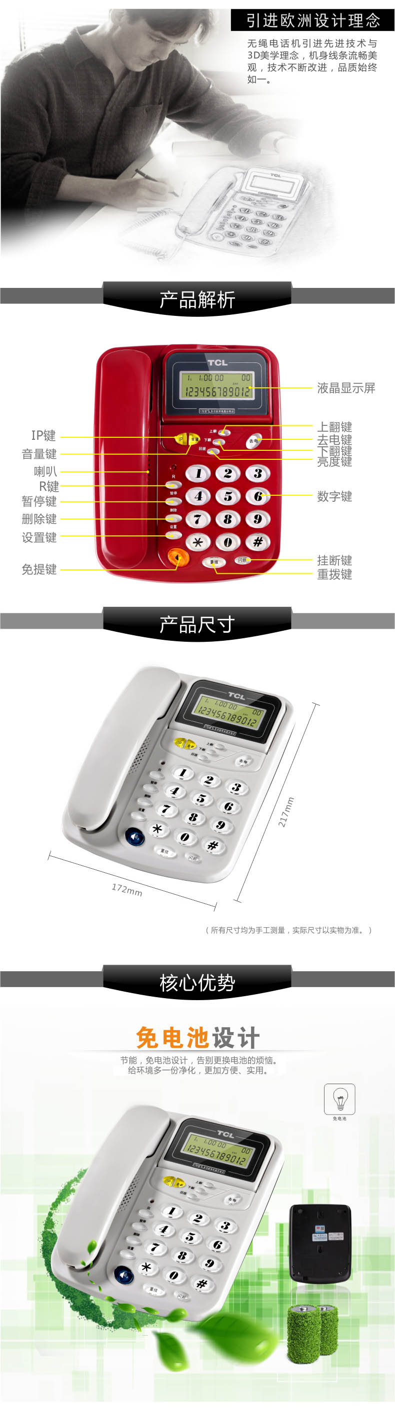 - 商品名称:TCL 电话机座机 固定电话 办公家用 来电显示 免电池 座式壁挂 HCD868(17B)TSD (火红色)