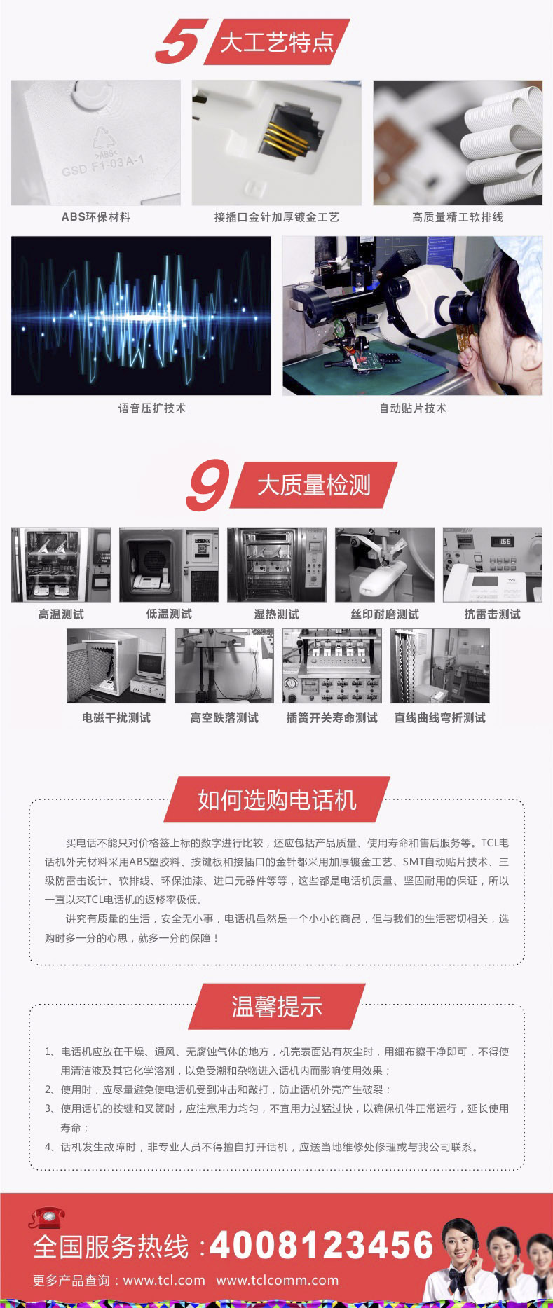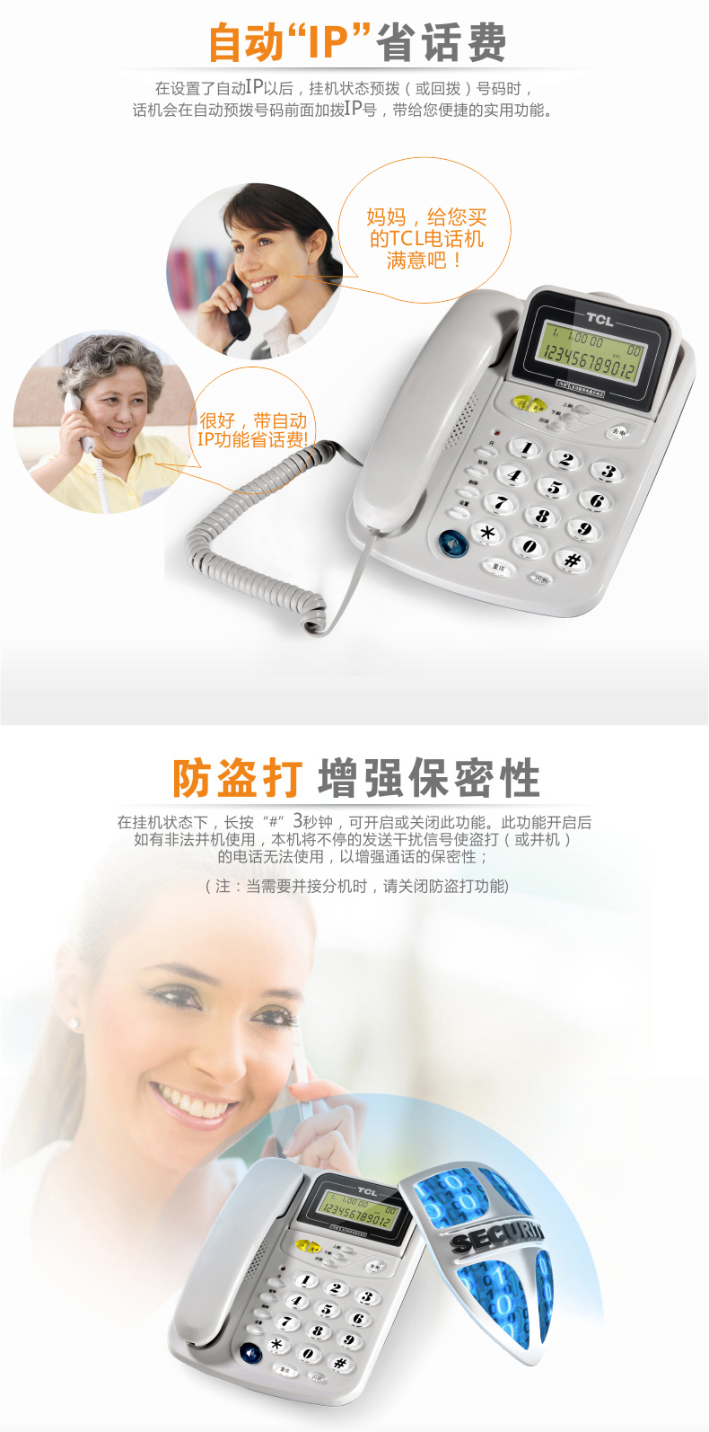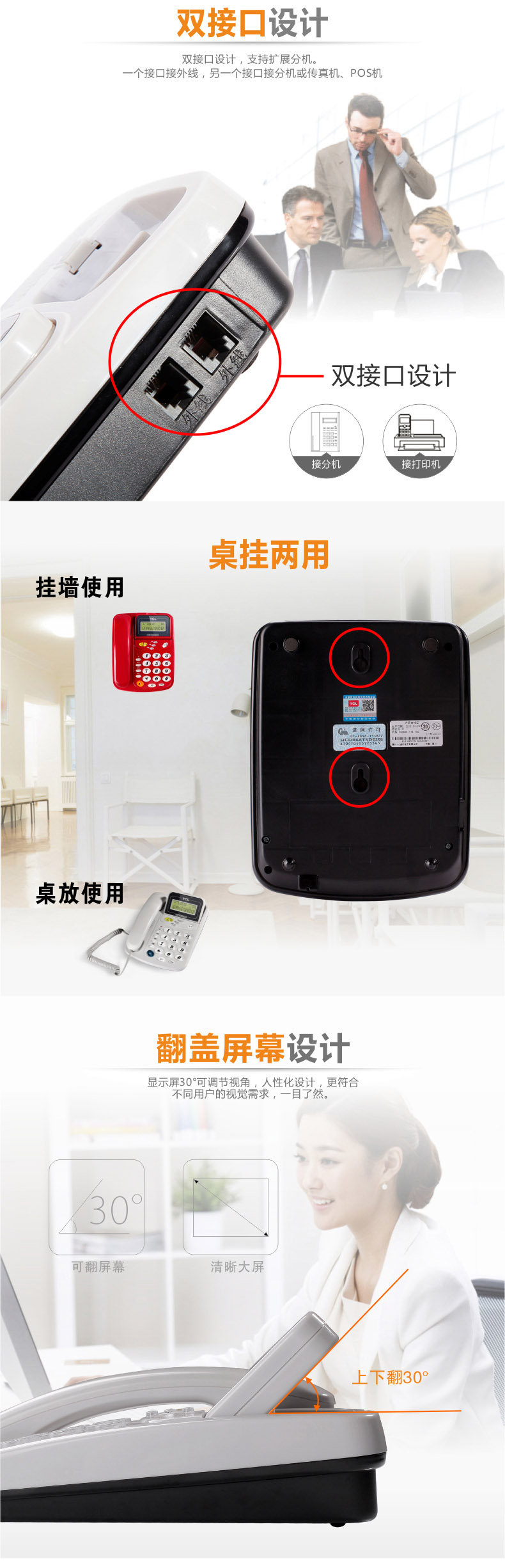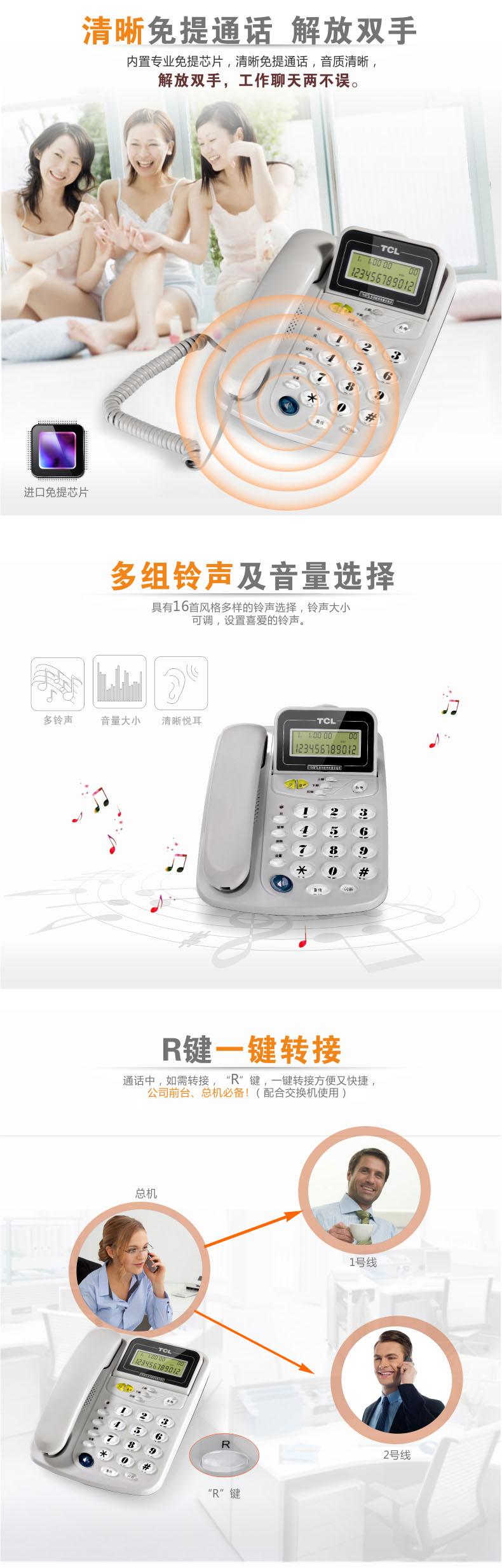 - 特色功能:来电显示;铃声选择;外线转接;双接口
