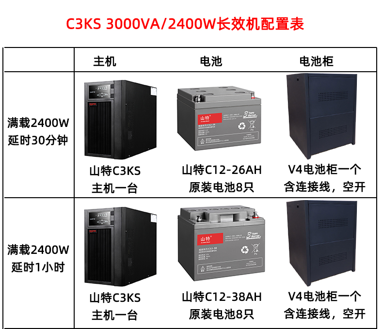- 商品名称:山特(SANTAK)C3KS 3000VA/2400W在线式UPS不间断电源外接电池长效机 满载2400W供电30分钟
