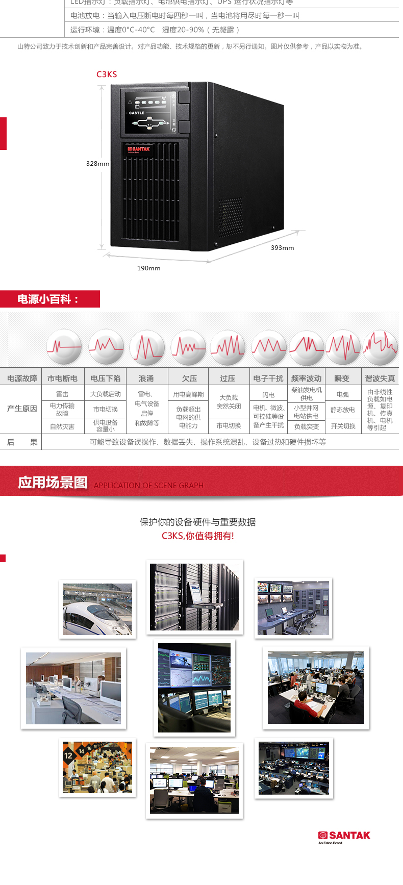 - 商品名称:山特(SANTAK)C3KS 3000VA/2400W在线式UPS不间断电源外接电池长效机 满载2400W供电1小时