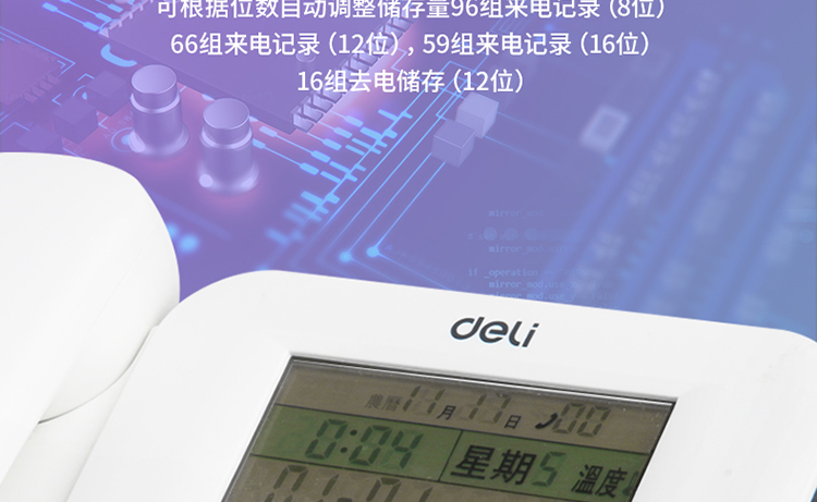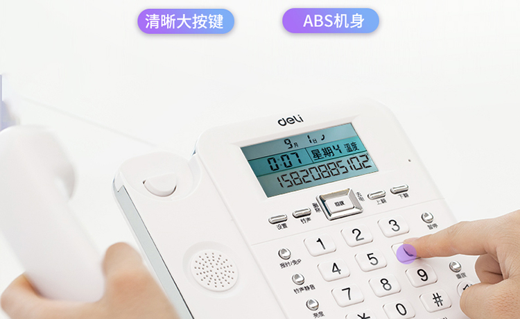 得力(deli) 电话机座机 固定电话 办公家用 30°倾角温度显示 790白