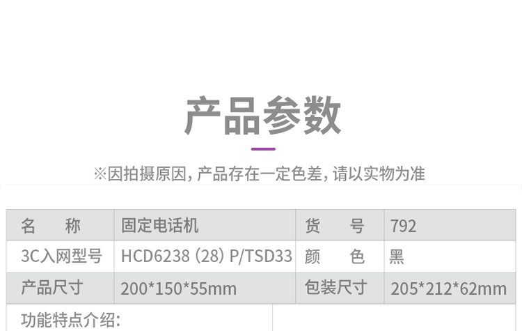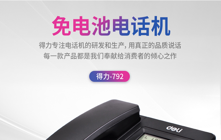 - 商品名称:得力(deli) 电话机座机 固定电话 办公家用 免电池带计算机功能792黑