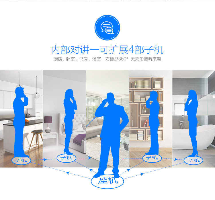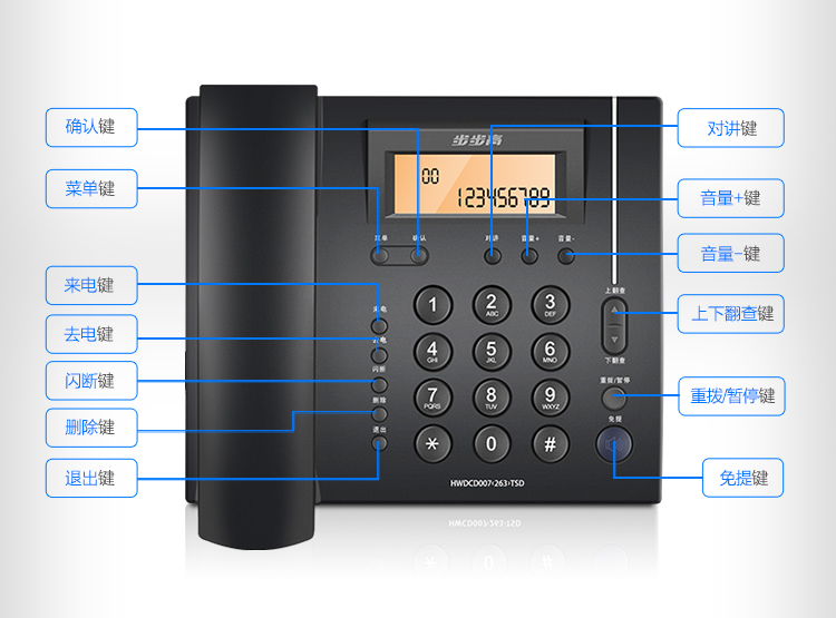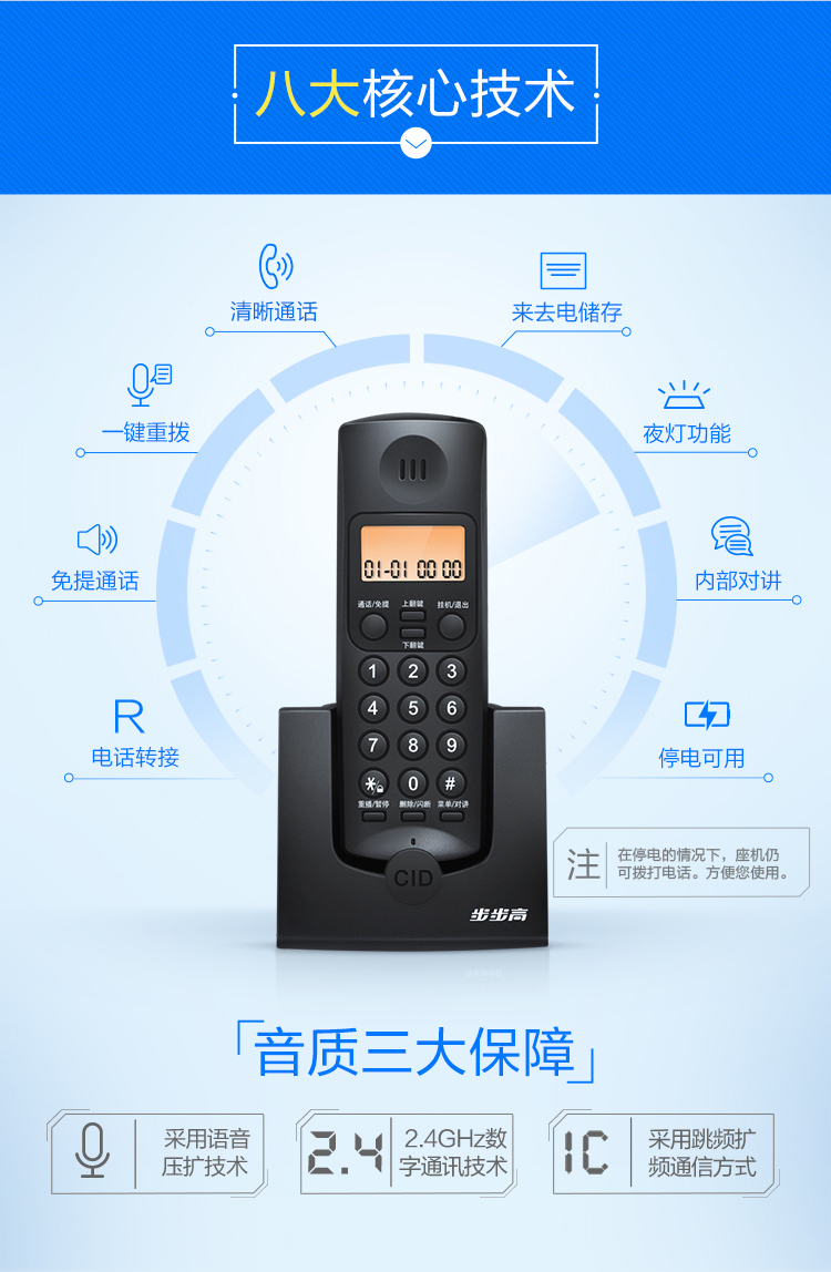 步步高(BBK)无绳电话机 无线座机 子母机 办公家用 内部对讲 3大音质保障 W263深蓝 一拖一
