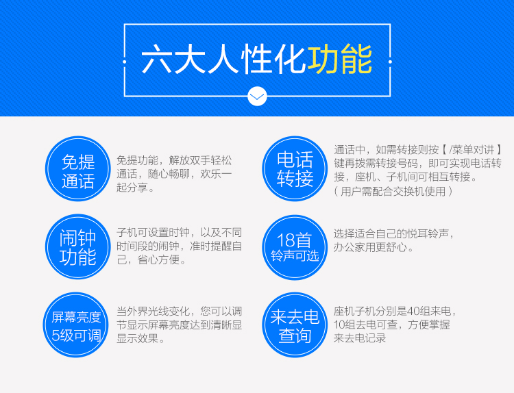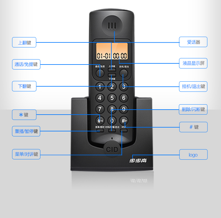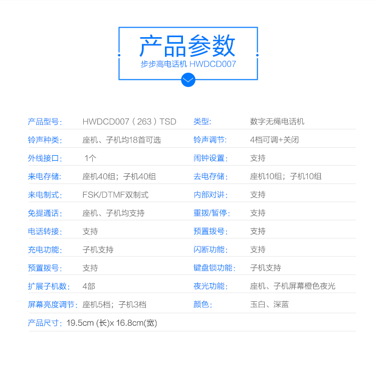 商品名称:步步高(BBK)无绳电话机 无线座机 子母机 办公家用 内部对讲 3大音质保障 W263深蓝 一拖一