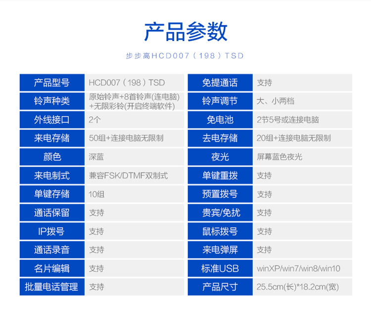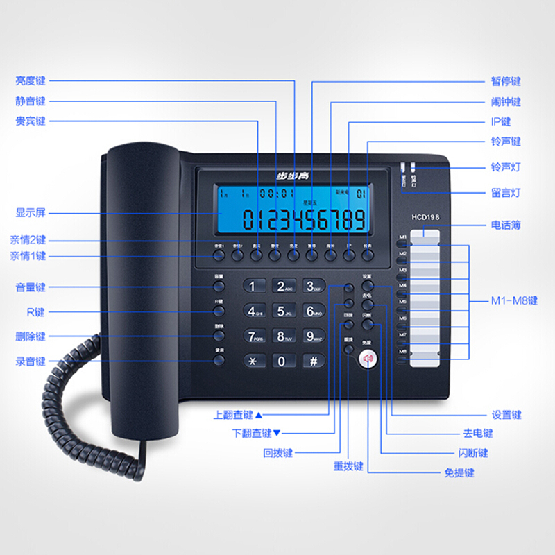 - 特色功能:来电显示;一键拨号;铃声选择;带通讯录;自动答录