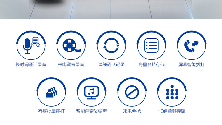 - 来电显示;一键拨号;铃声选择;带通讯录;自动答录