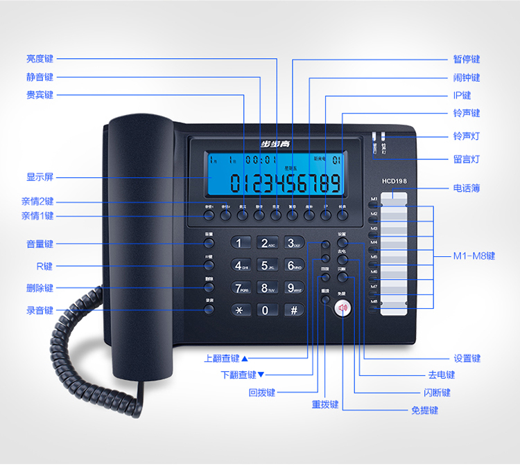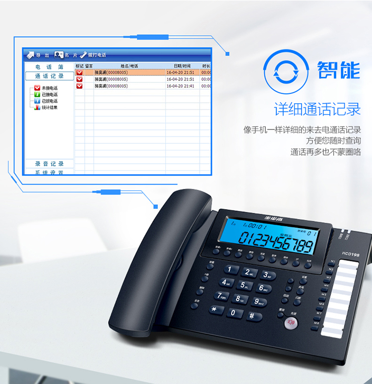 - 商品名称:步步高(BBK)录音电话机 固定座机 办公家用 接电脑海量存储 智能屏幕拨打 HCD198深蓝