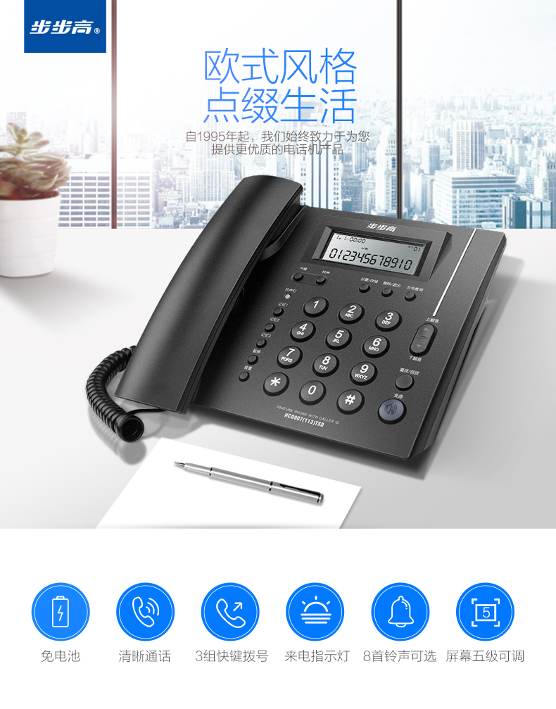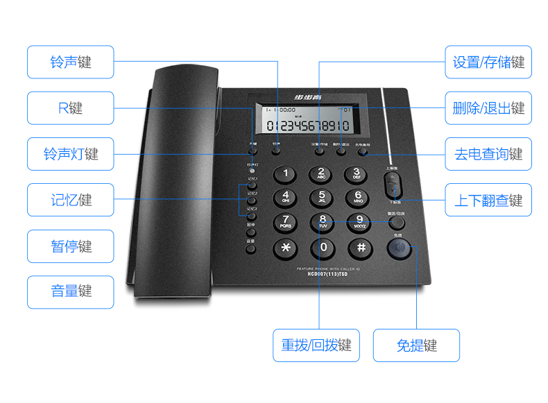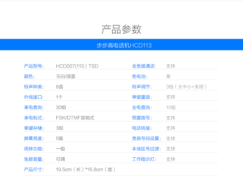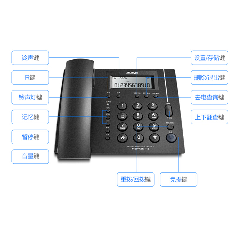 商品名称:步步高(BBK)电话机座机 固定电话 办公家用 免电池 一键快拨 HCD113深蓝