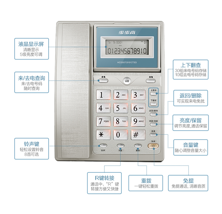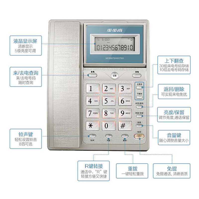 - 商品名称:步步高(BBK)电话机座机 固定电话 办公家用 免电池 60度翻转屏 HCD6101流光蓝