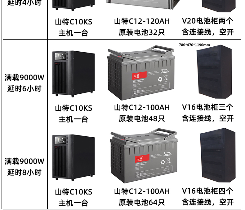 - 商品名称:山特(SANTAK)C10KS 10KVA/9000W在线式UPS不间断电源外接电池长效机满载9000W供电3小时