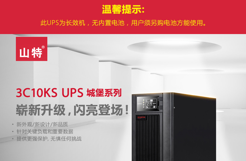 - 商品名称:山特(SANTAK)3C10KS 三进单出在线式UPS不间断电源外接电池长效机 10KVA/9000W单主机 (不含电池)