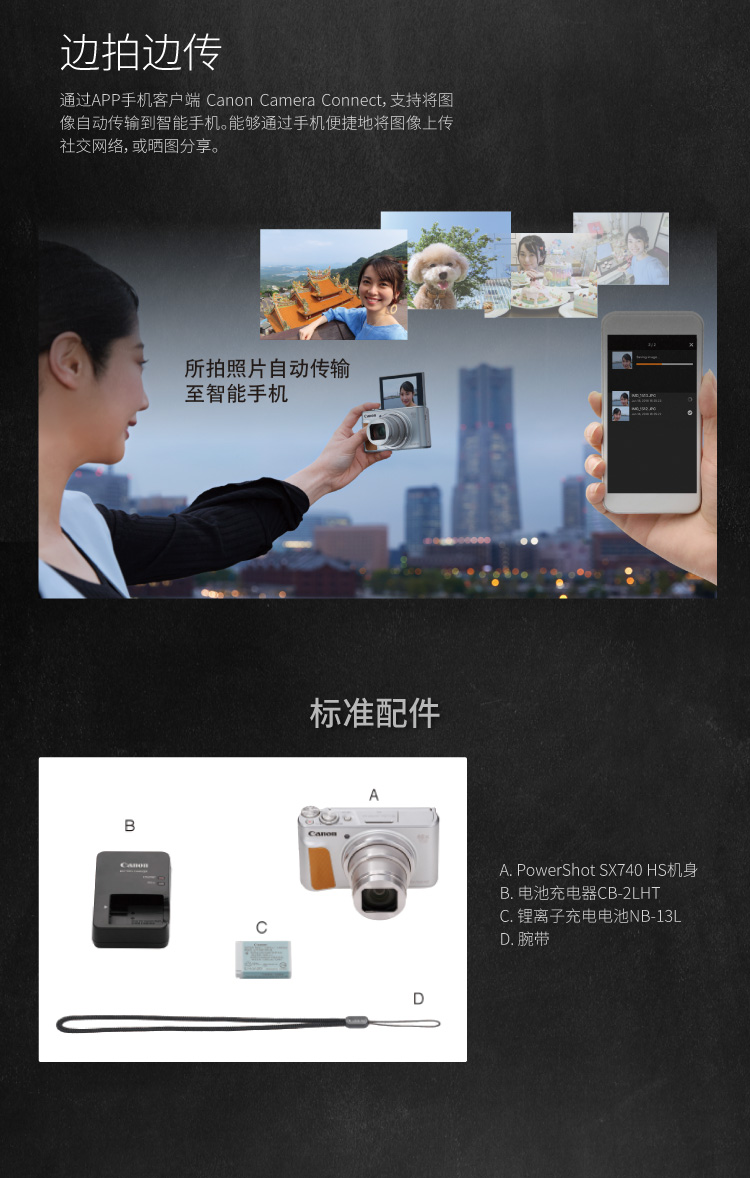 - 商品名称:佳能(Canon)PowerShot SX740 HS 数码相机(黑)数码高清旅游小型摄影 美颜自拍 40倍长焦家用数码相机