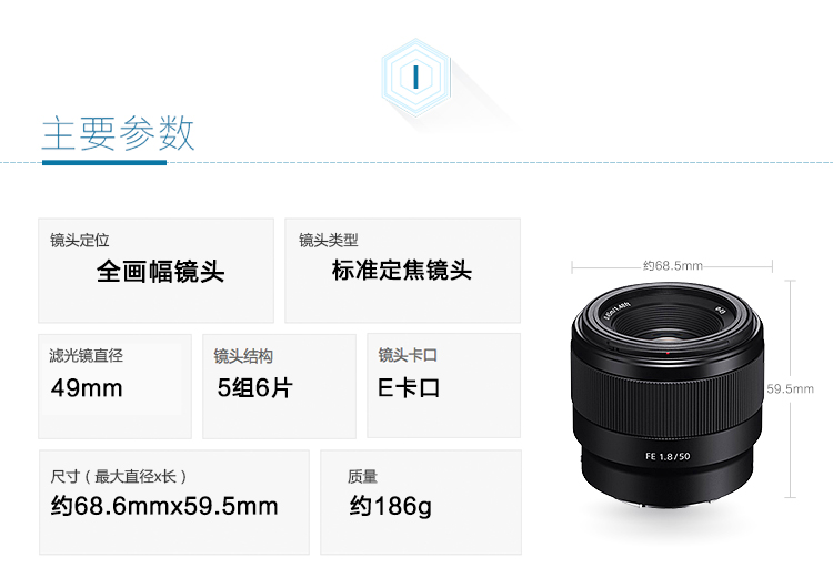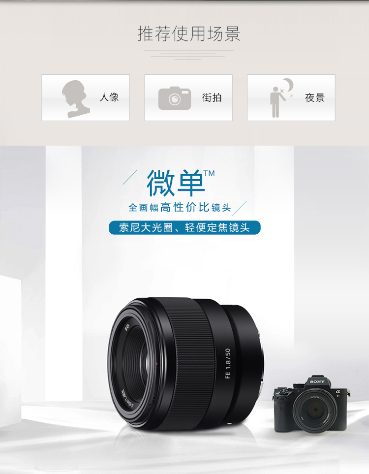 - 商品名称:索尼(SONY)FE 50mm F1.8 全画幅标准定焦微单相机镜头 E卡口(SEL50F18F)人像 街拍 夜景
