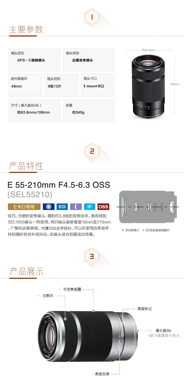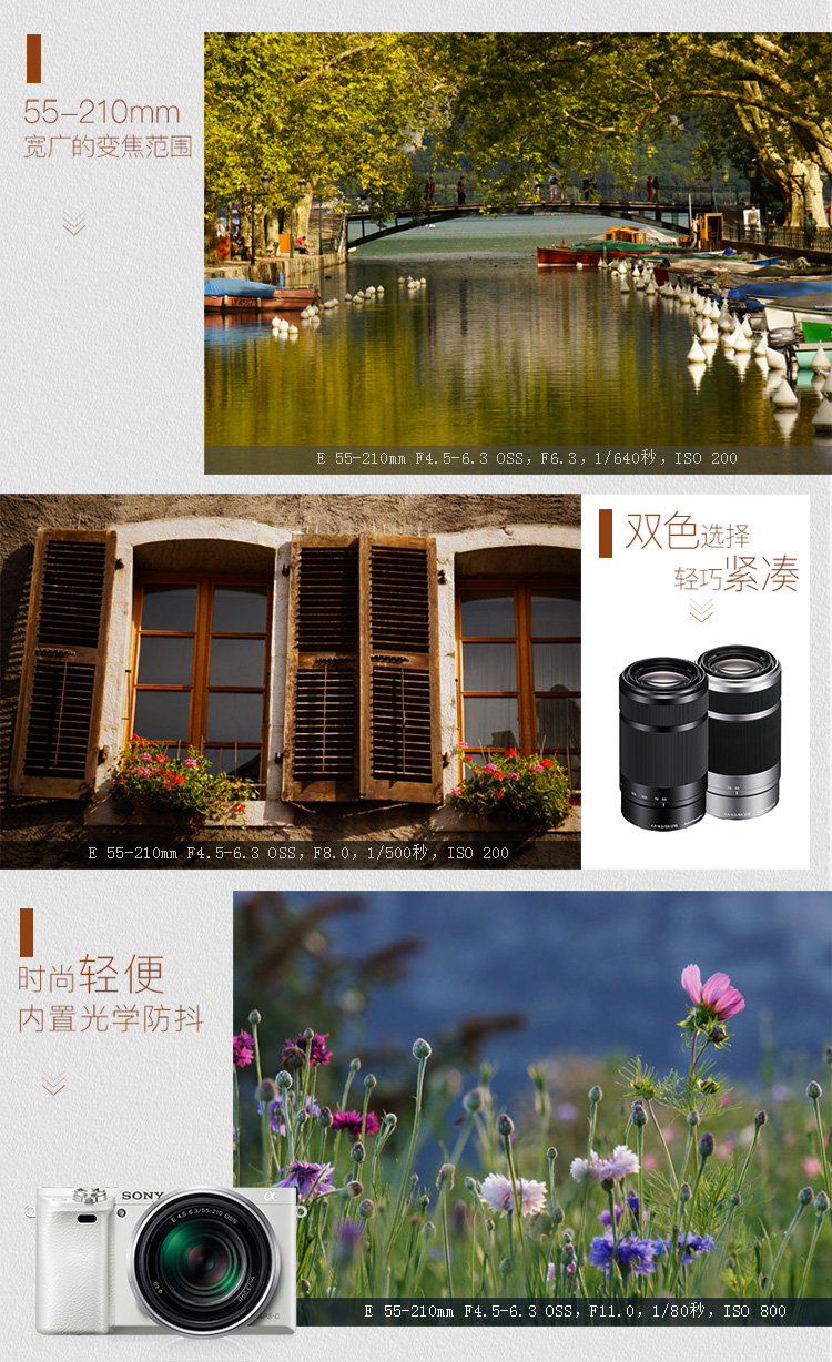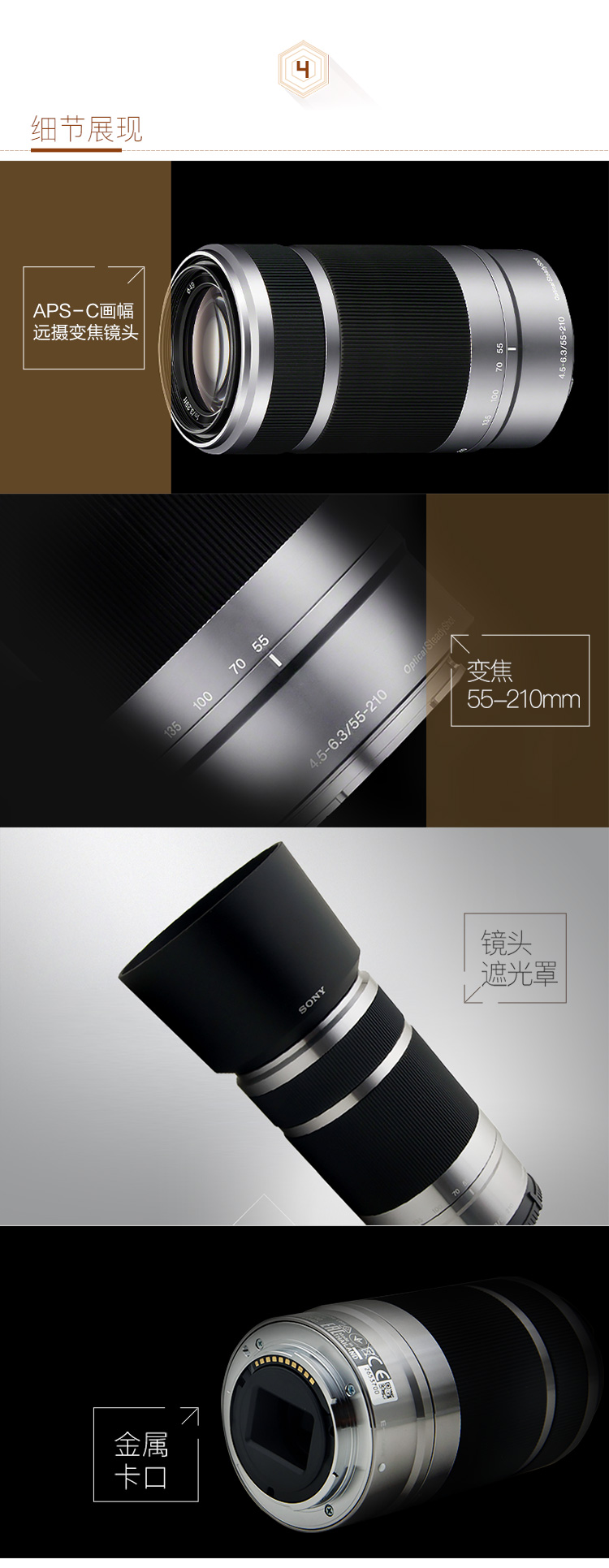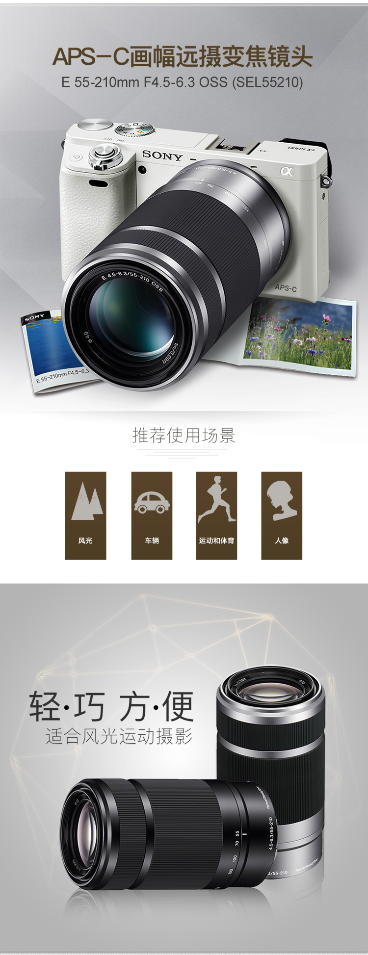 - 商品名称:索尼(SONY)E 55-210mm F/4.5-6.3 OSS APS-C画幅远摄大变焦微单相机镜头 黑色E卡口(SEL55210)
