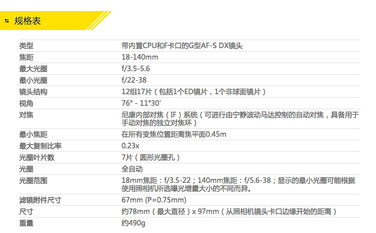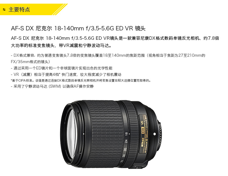- 型号:AF-S DX 尼克尔 18-140mm f/3.5-5.6G ED VR