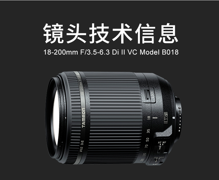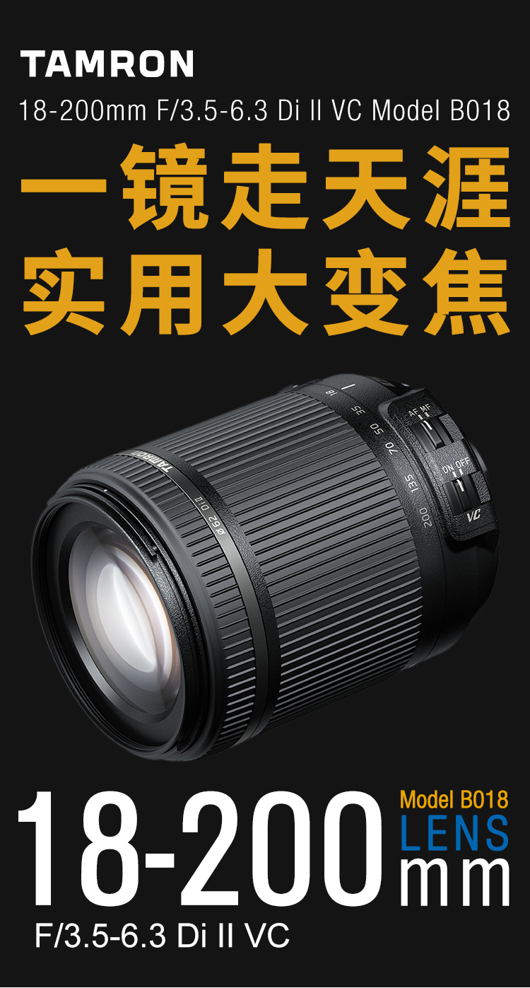 商品名称:腾龙(Tamron)B018 18-200mm F/3.5-6.3 Di II VC半画幅大变焦防抖镜头 家用旅游风光人像(佳能单反卡口)