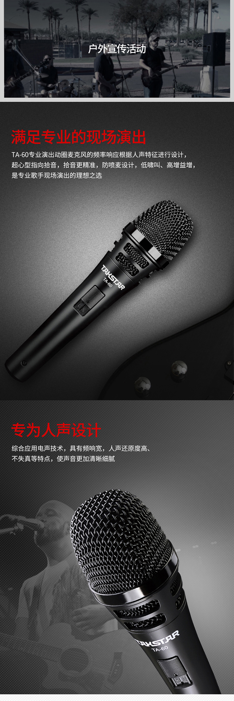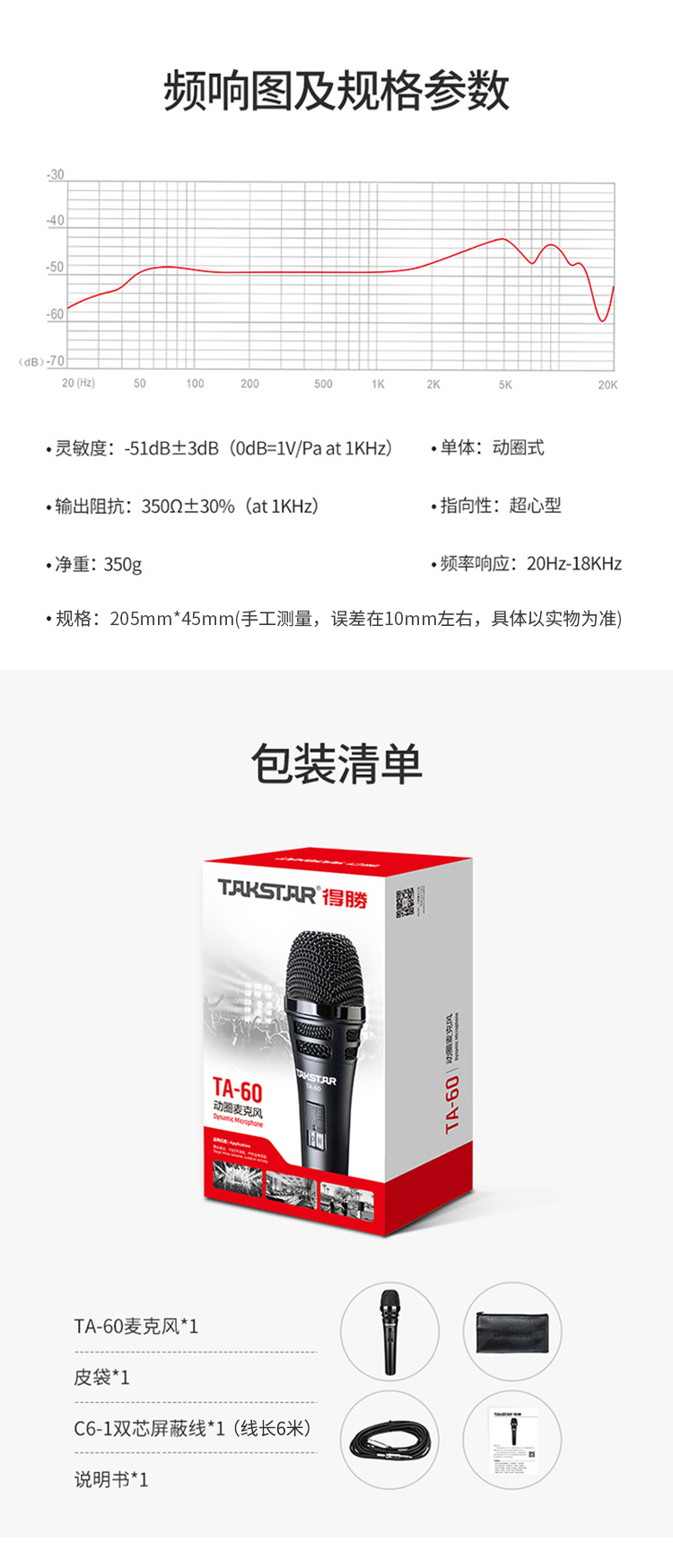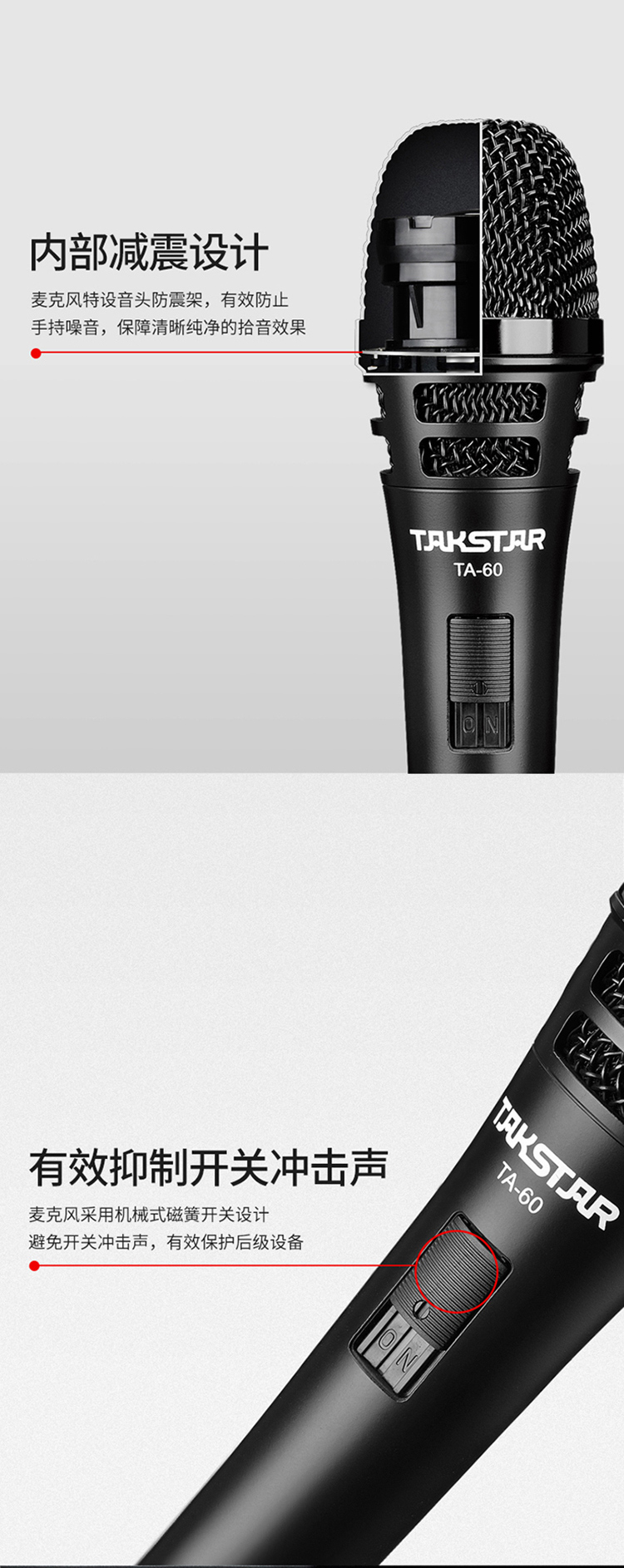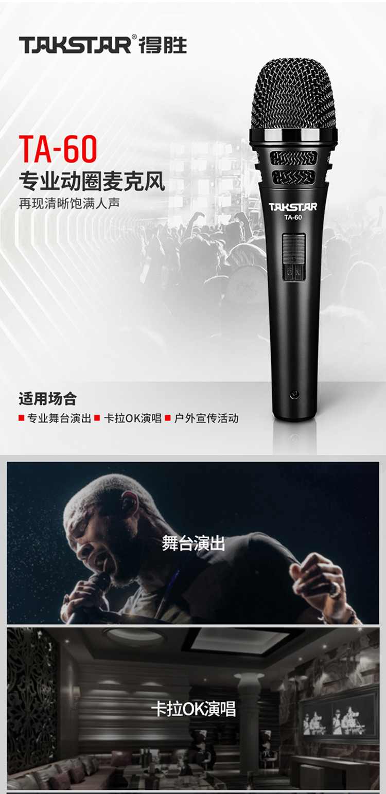 - 商品名称:得胜(TAKSTAR)TA-60有线动圈麦克风 专业演出唱歌话筒 家庭ktv演唱K歌卡拉OK舞台录音会议主持麦克风 黑色