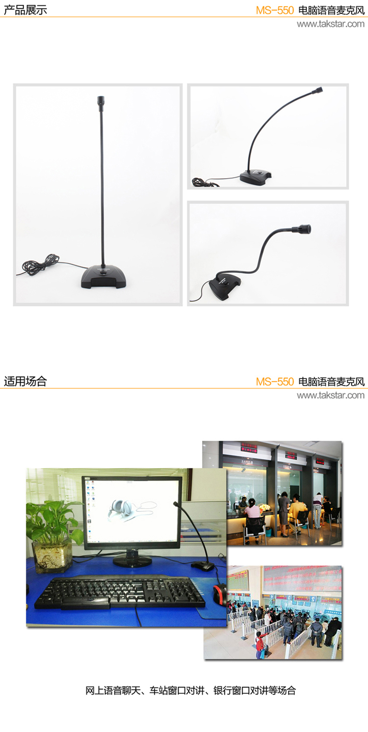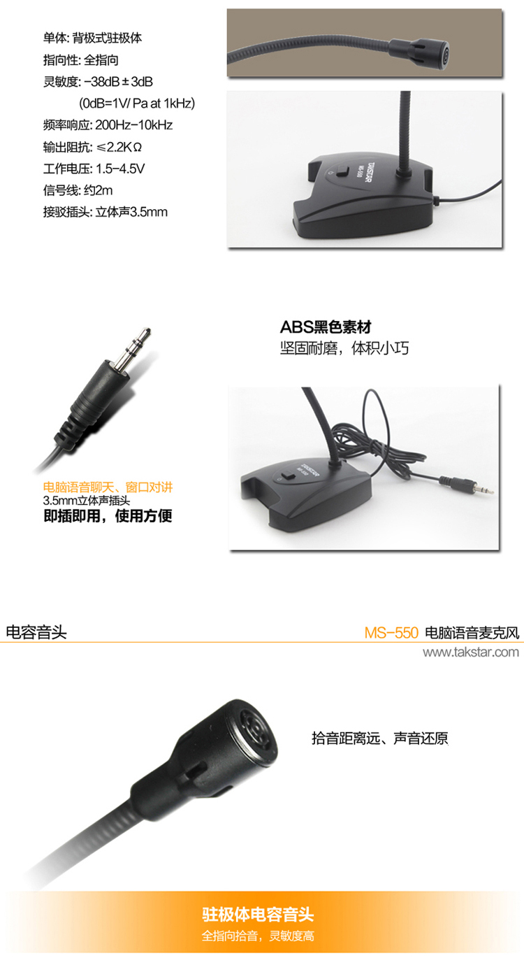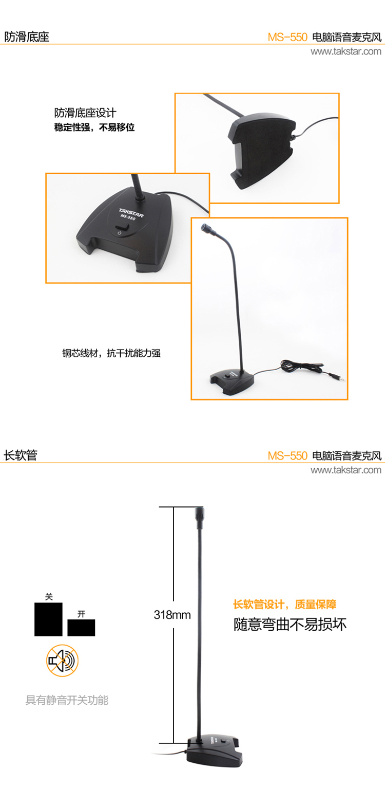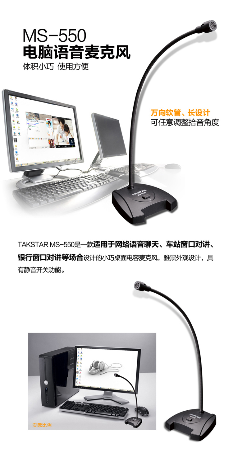 - 商品名称:得胜(TAKSTAR)MS-550 电脑语音麦克风 鹅颈有线话筒 游戏直播语音主播电竞会议电容麦克风 黑色