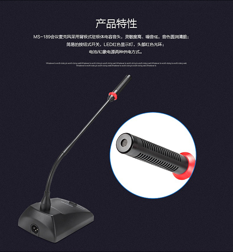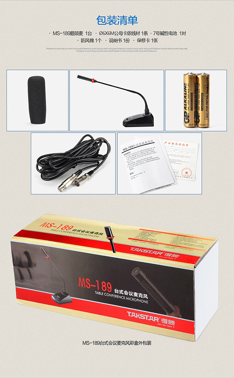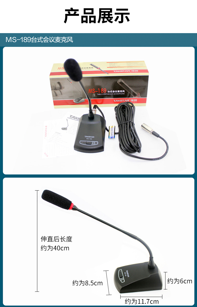 - 商品名称:得胜(TAKSTAR)MS-189会议麦克风 台式鹅颈有线话筒 专业演出舞台主持麦克风 典雅黑