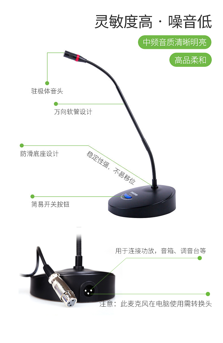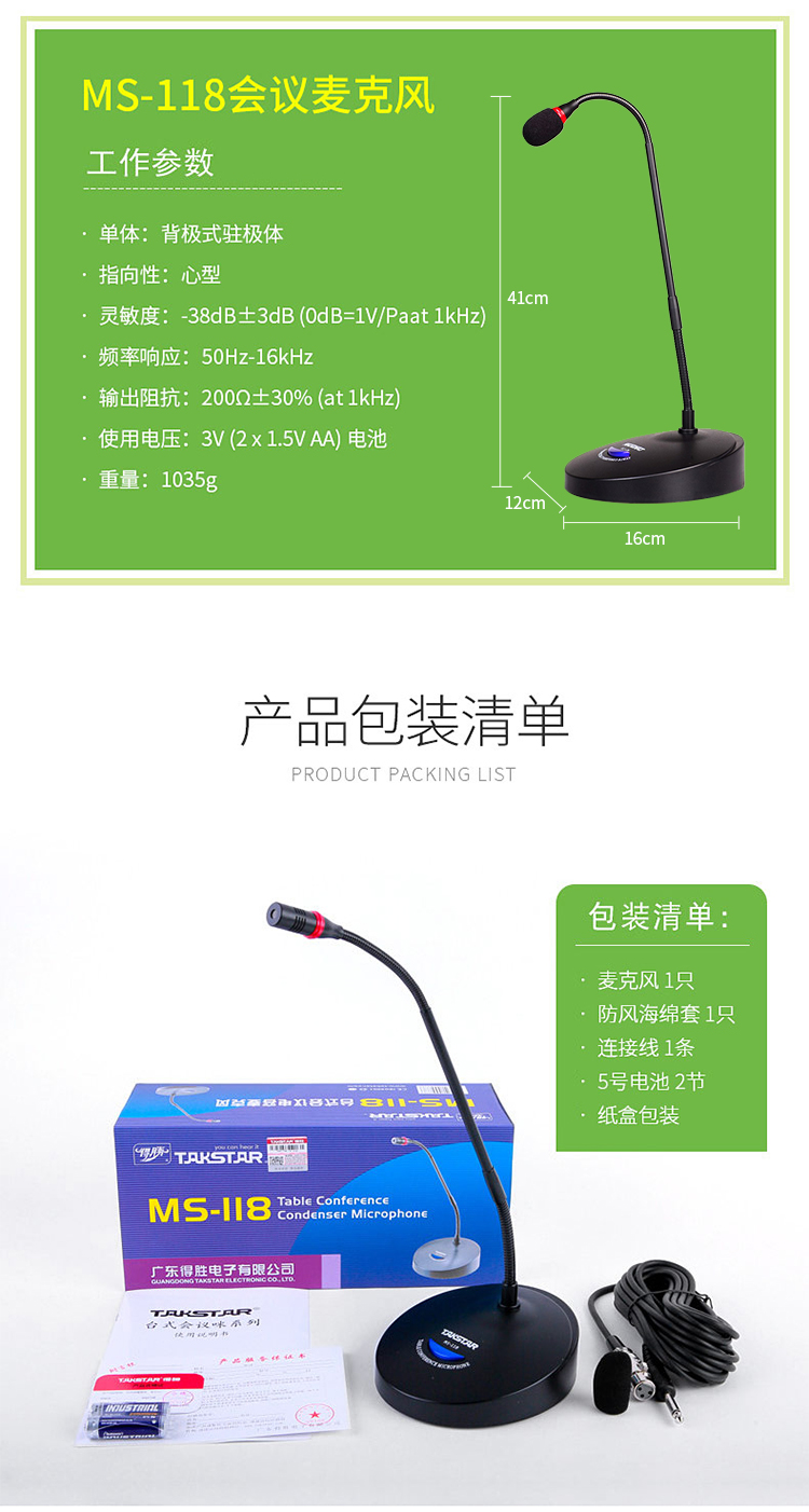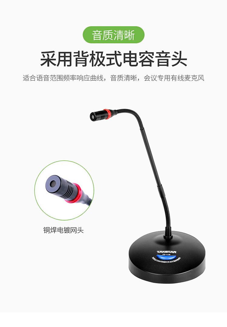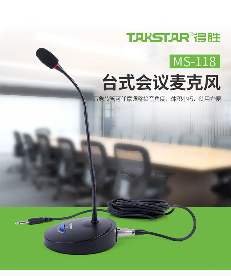 - 商品名称:得胜(TAKSTAR)MS-118台式会议麦克风 有线会议鹅颈话筒 公司会议专用 活动演讲 校园会议桌面话筒典雅黑