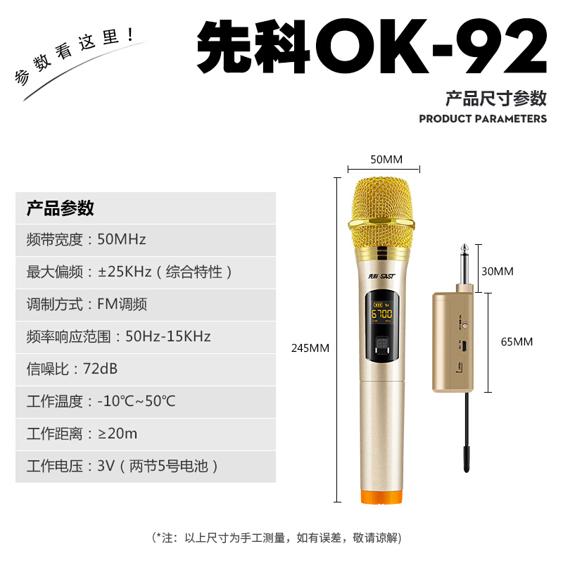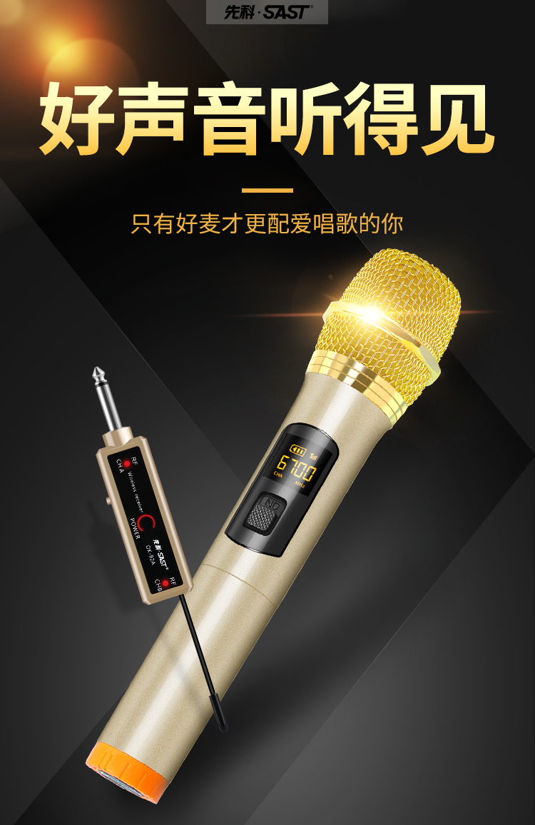 商品名称:先科 SAST OK-92 无线麦克风 话筒 家庭KTV会议唱歌网络电教演讲专用K歌卡拉OK户外插音响音箱金属款单咪 金