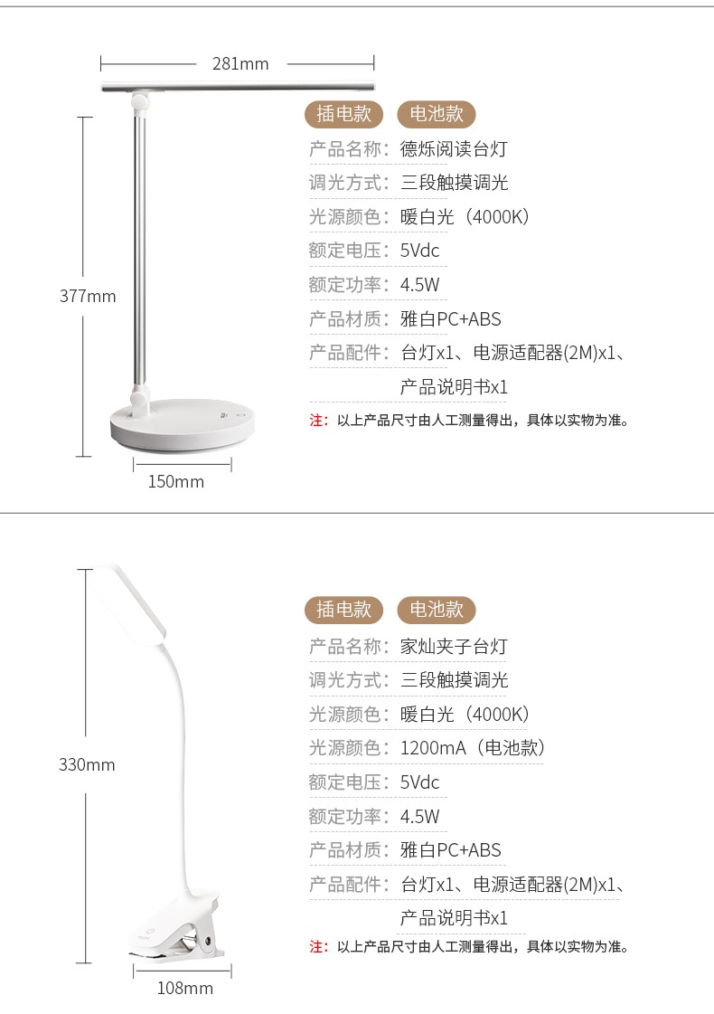 - 商品名称:德力西(DELIXI)台灯LED护眼灯寝室宿舍床头灯夹子灯USB充电台灯学生学习小台灯 15W致阅【国AA级】