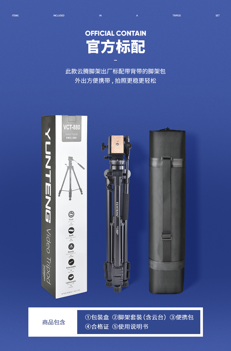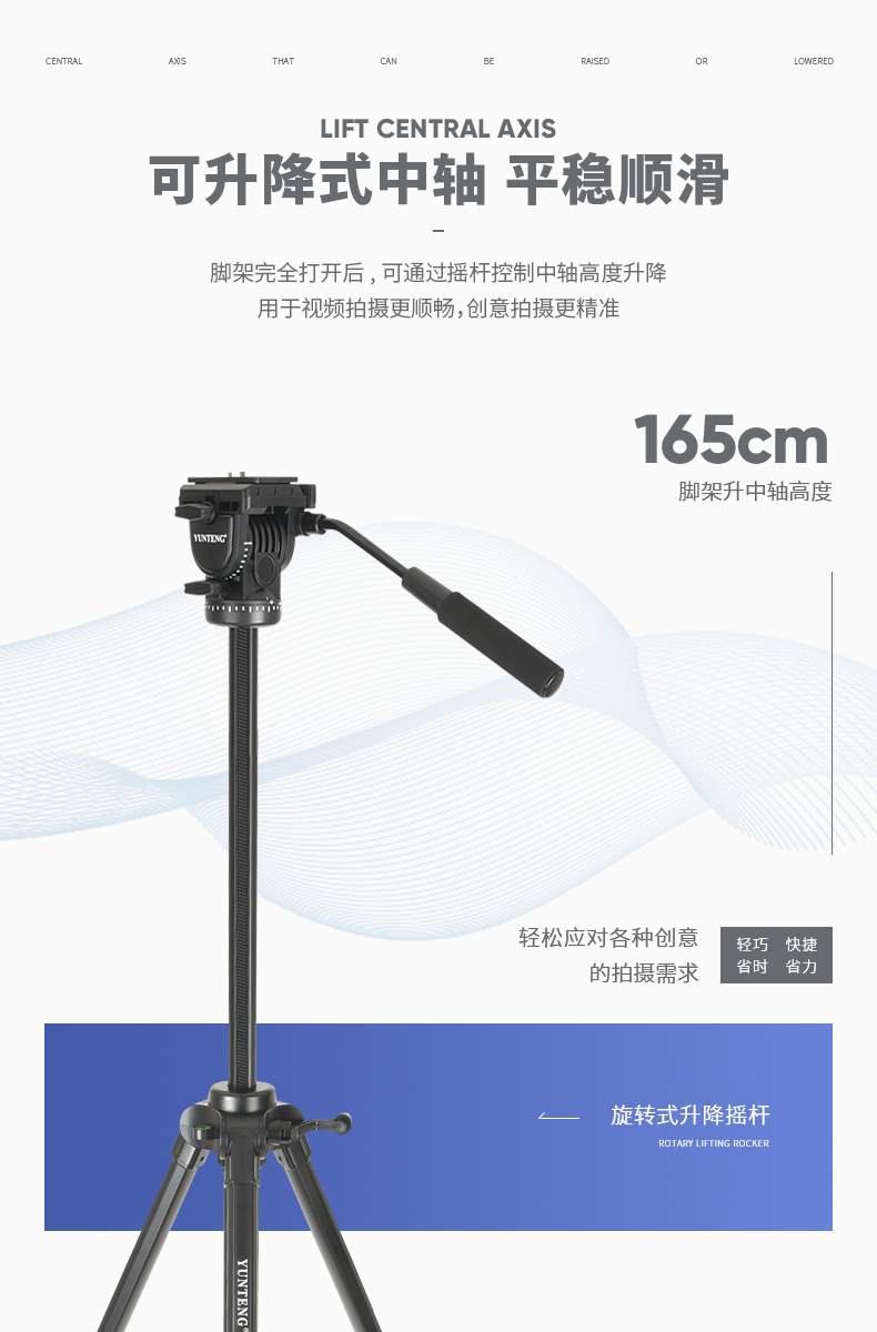- 商品名称:云腾880专业摄像三脚架液压云台单反照相机户外录像DV微电影直播稳定铝合金三角架通用佳能索尼松下