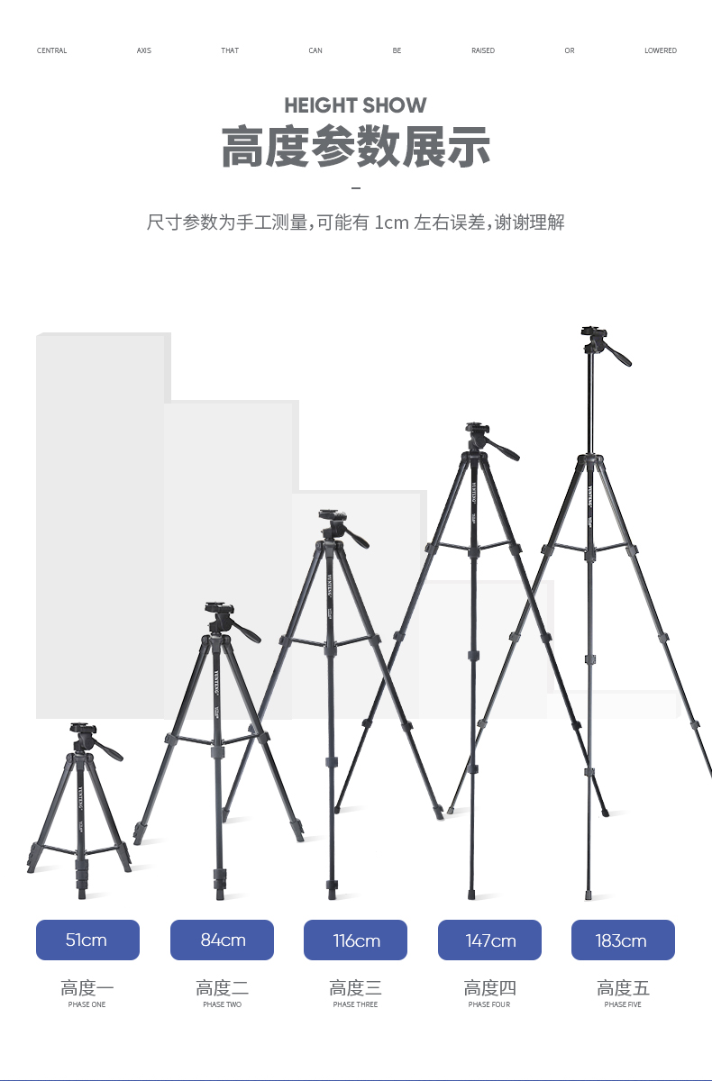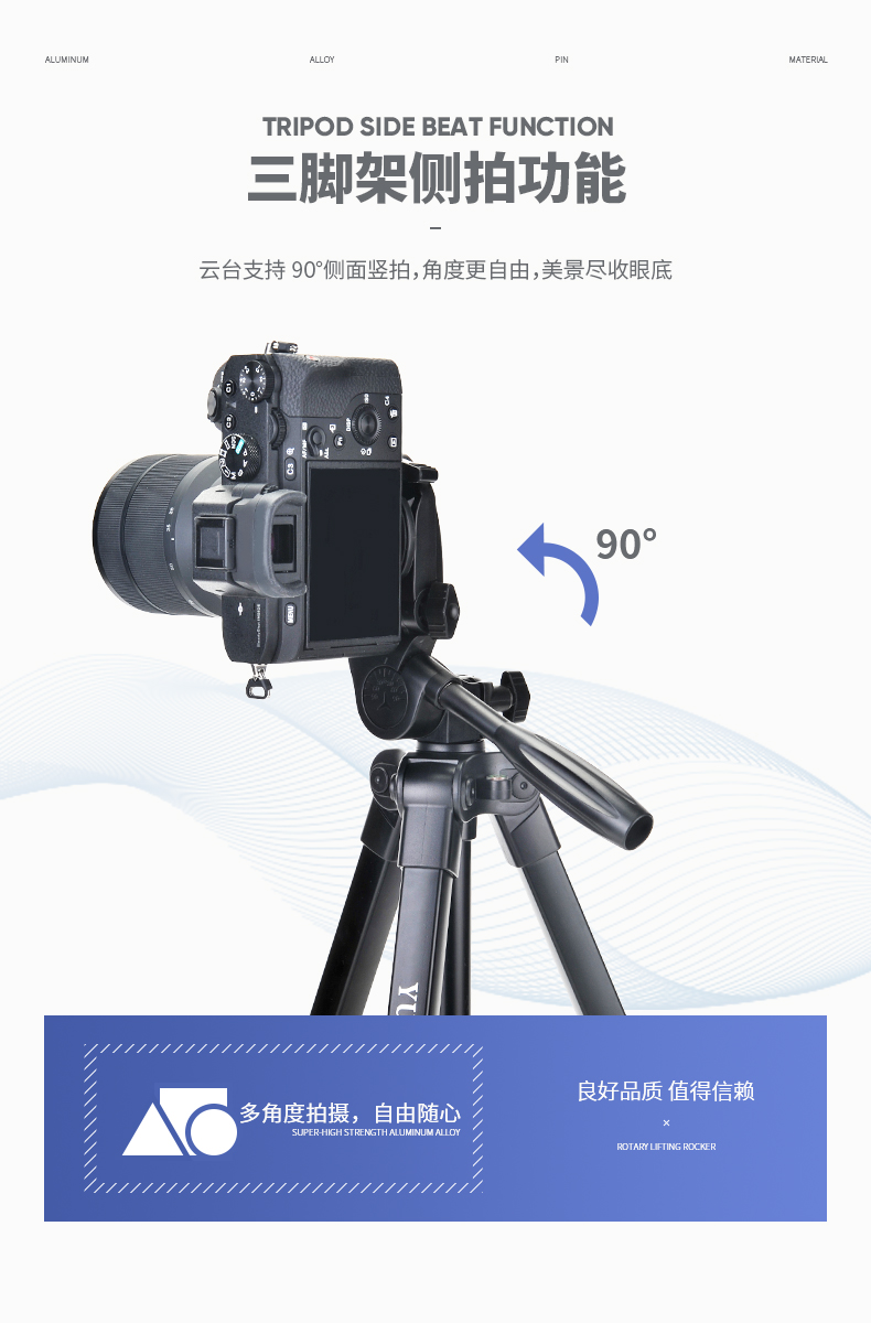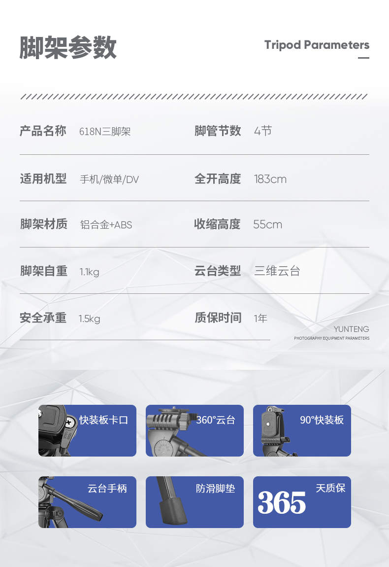 - 商品名称:云腾618N手机三脚架1.8米高微单反相机拍照摄影vlog便携铝合金直播支架外出旅行三角架 黑色