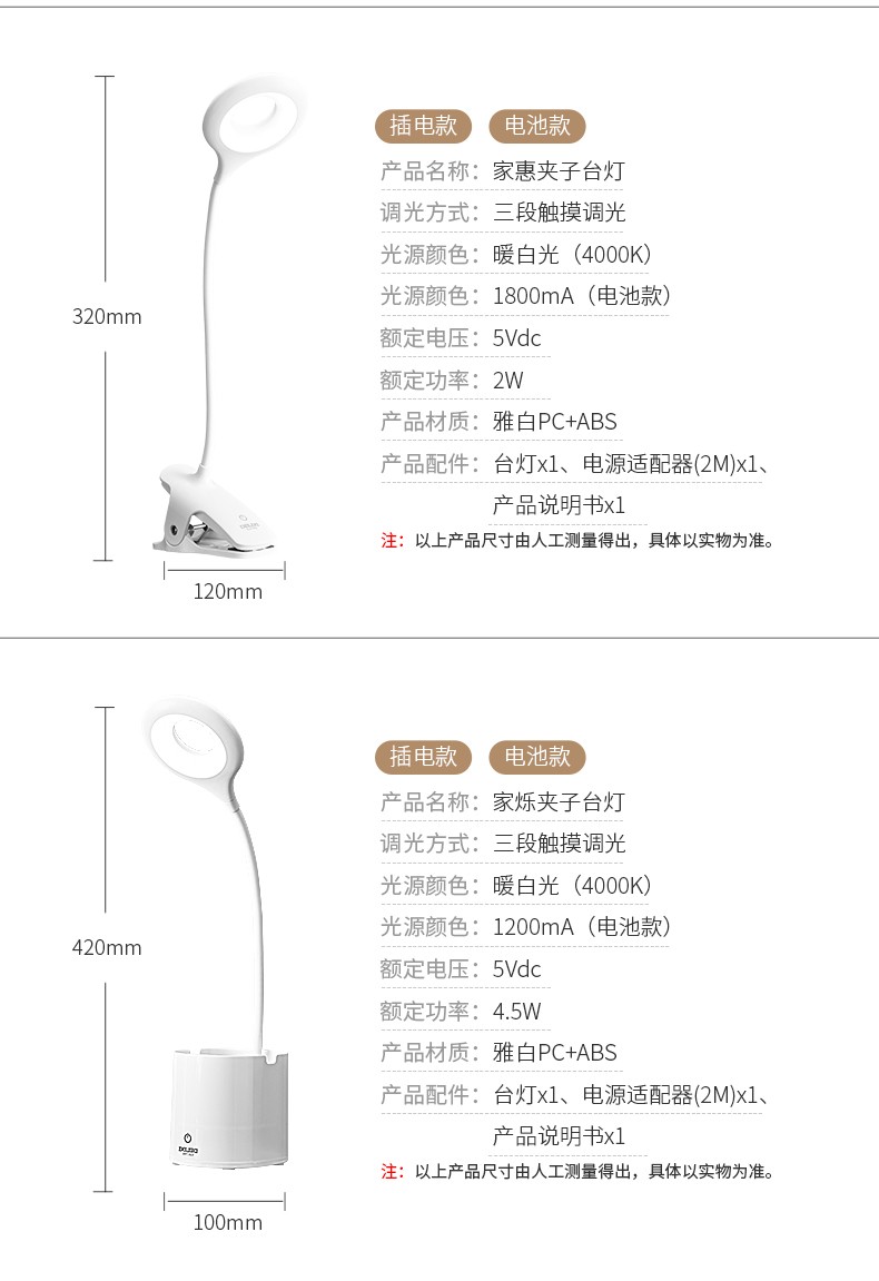 - 商品名称:德力西(DELIXI)台灯LED护眼灯寝室宿舍床头灯夹子灯USB充电台灯学生学习小台灯 15W致夜【国AA级】