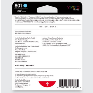 惠普(HP)C8774ZZ 801号浅蓝色墨盒