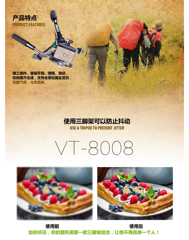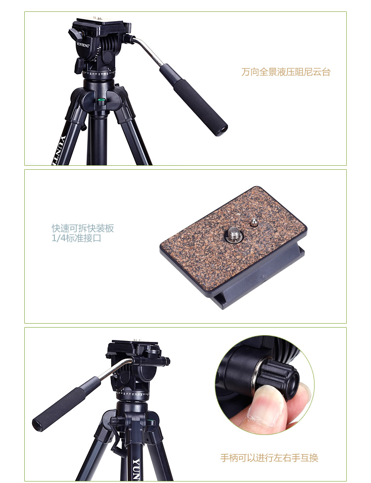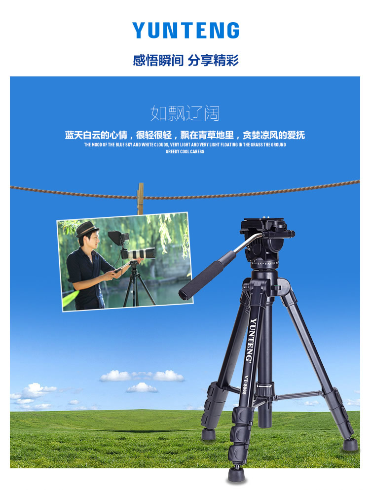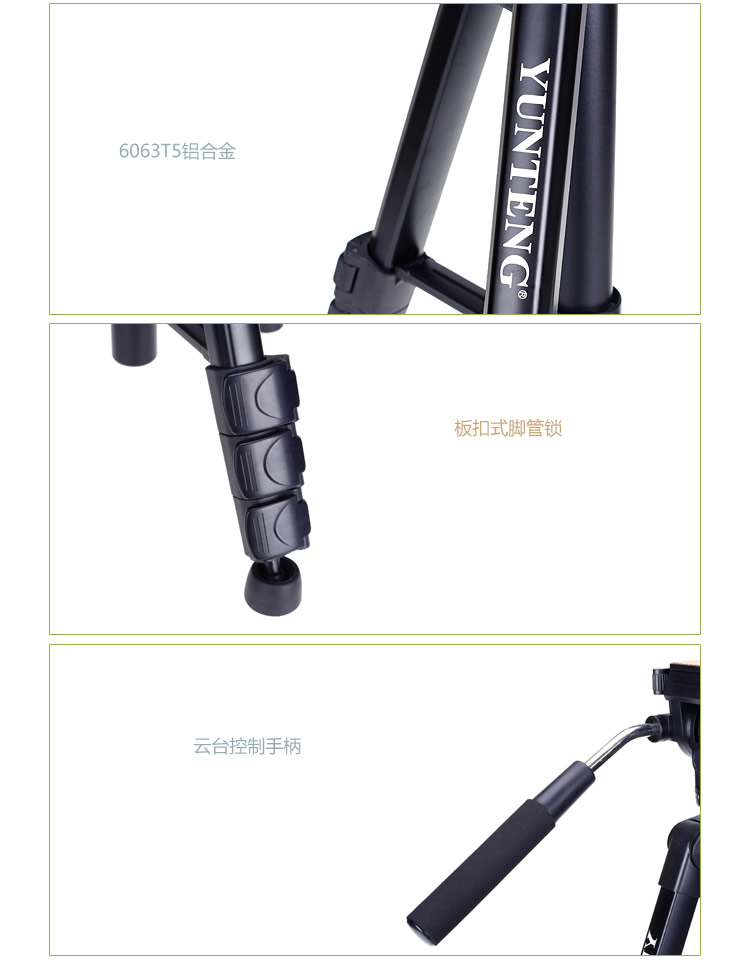 商品名称:云腾(YUNTENG) VT-8008 微电影级专业大型三脚架云台套装 微单数码单反相机摄像机用 优质铝合金三角架黑色