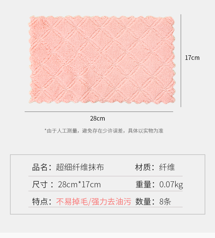 商品名称:艺姿 加厚双面抹布 厨房清洁布 多功能百洁布8条装 不沾油洗碗巾 YZ-CF512