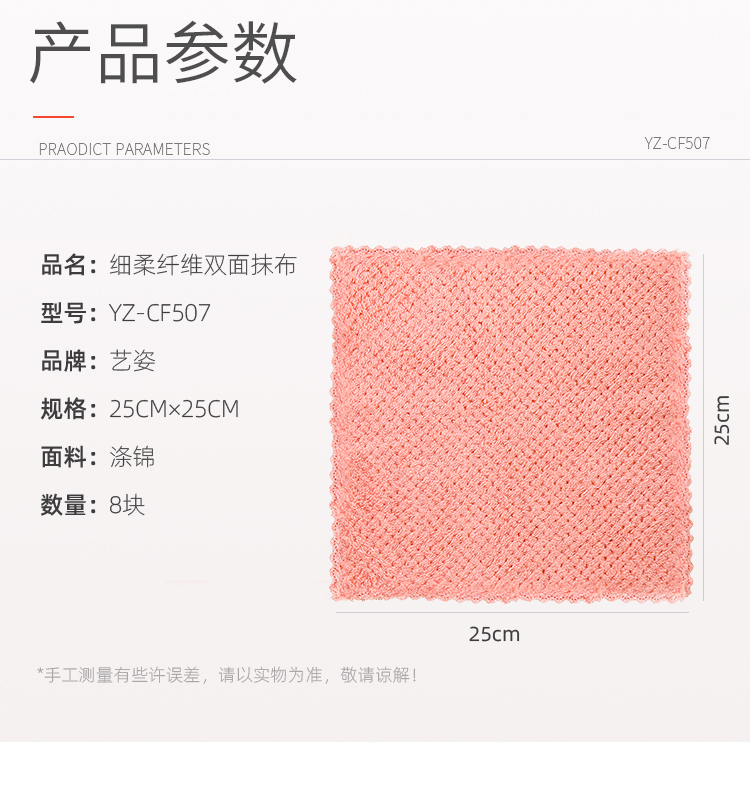 - 商品名称:艺姿加厚抹布厨房家务清洁布基本不掉毛吸水洗碗巾擦桌子洗碗布8条装 YZ-CF507