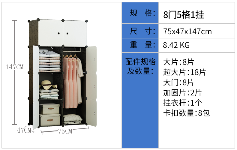 - 商品名称:蔻丝 ColesHome 简易衣柜收纳柜大容量组装塑料非布衣橱