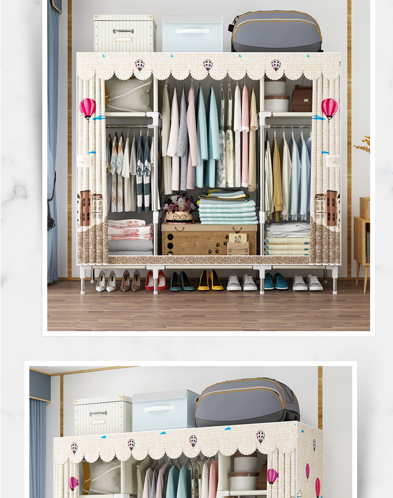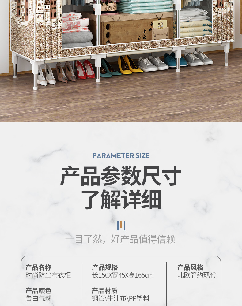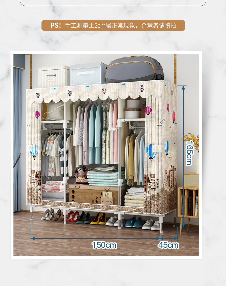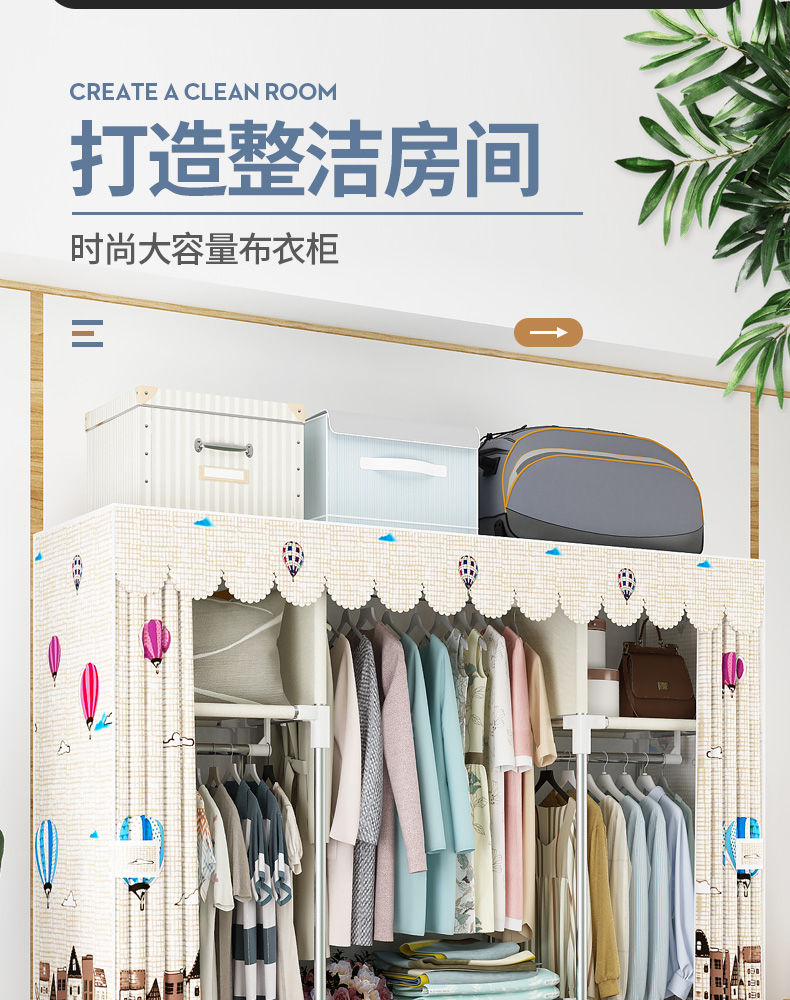 商品名称:乐爱家 布衣柜牛津布艺钢管加厚加粗挂衣架加固大号简易衣柜双人钢架组装收纳柜衣橱非实木