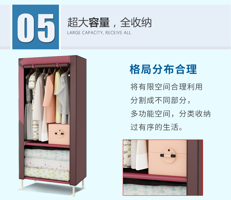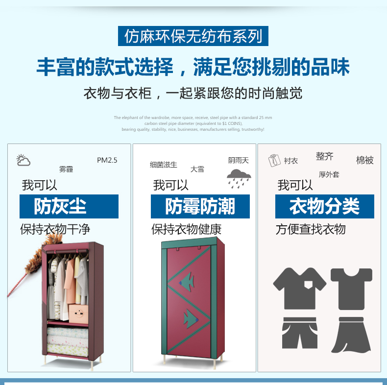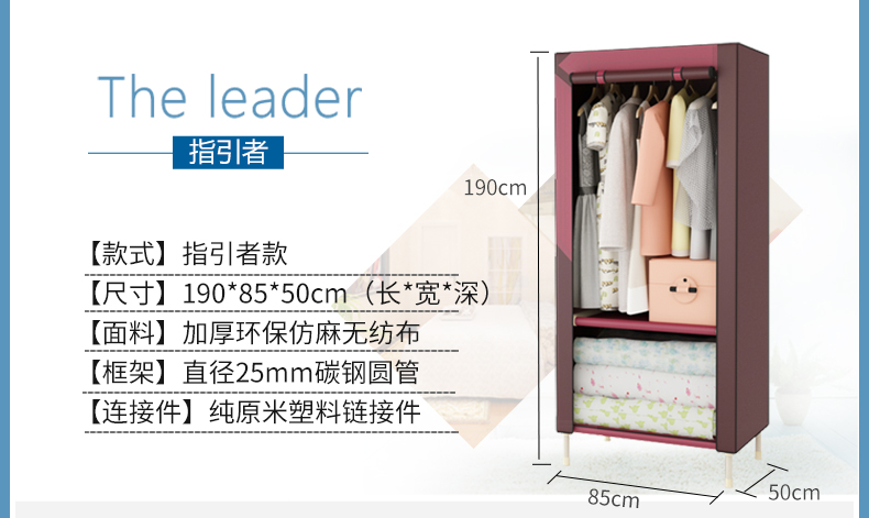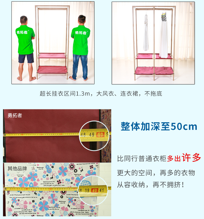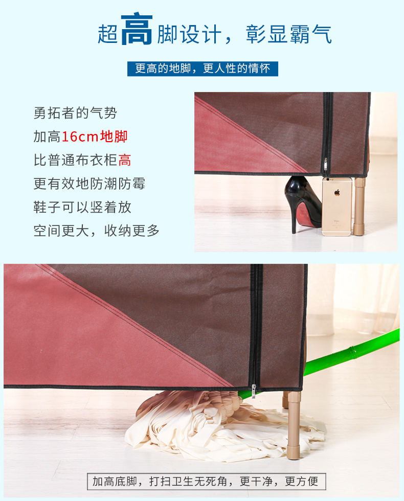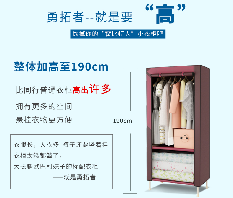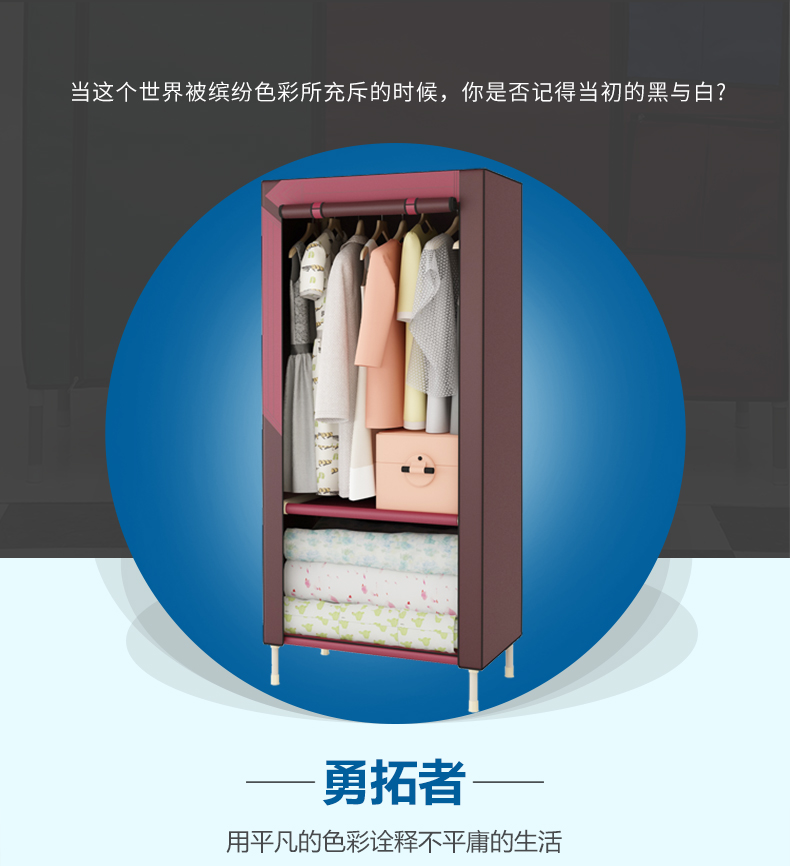 商品名称:勇拓者 单人小号简易布衣柜25mm钢管加粗加固折叠组装钢架布艺衣橱 85s灰白色