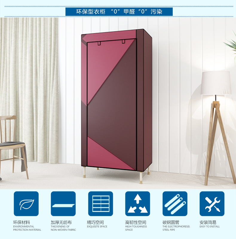 - 商品名称:勇拓者 单人小号简易布衣柜25mm钢管加粗加固折叠组装钢架布艺衣橱 85s典雅灰